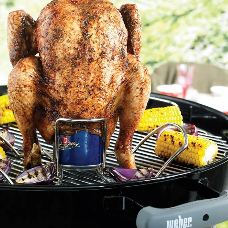 Выходом из ситуации может стать специальный аксессуар, приобрести который вы всегда можете в нашем интернет магазине. Если ваша цель – вкусная и ароматная курица, подставка Вебер из прочной нержавеющей стали в оригинальной форме станет отличным решением.