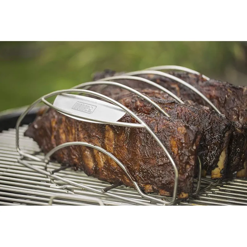 Подставка для запекания ребер Weber – удобный аксессуар, который придется по нраву истинным любителям мяса. Каждая хозяйка оценит подставку по достоинству, так как благодаря большим габаритам она вмещает много мяса. Такое достоинство позволяет готовить на подставке еду для большой компании, особенно это актуально для выездов на природу или семейных торжеств.