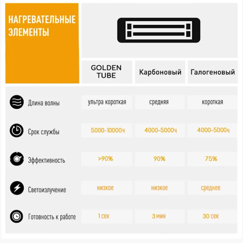 - тип нагревательного элемента (лампы) – карбон (углерод);