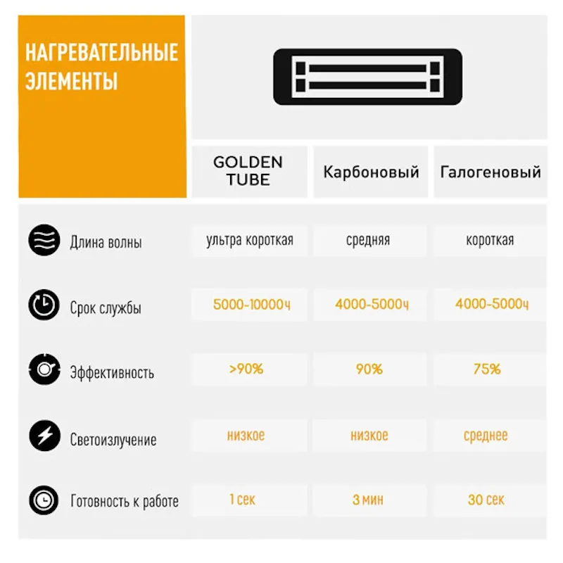 - тип нагревательного элемента (лампы) – карбон (углерод);