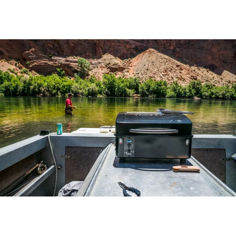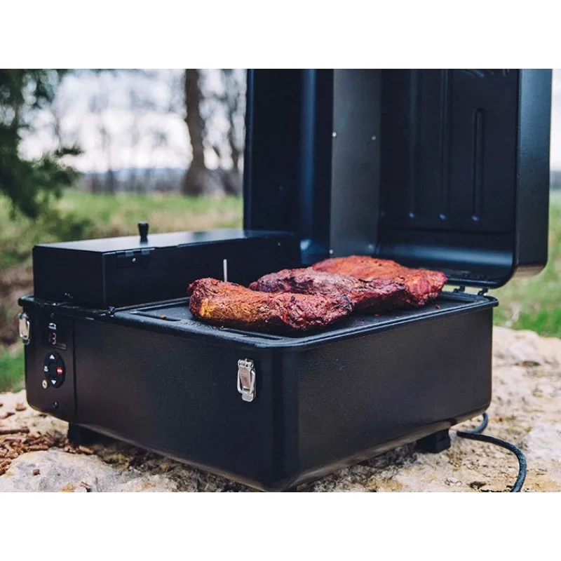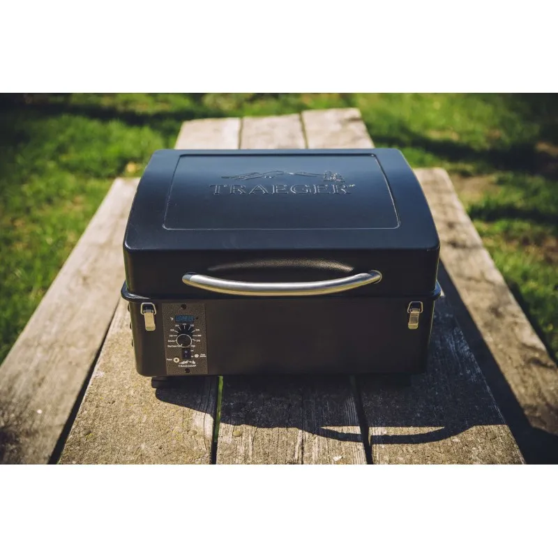 Пеллетный портативный гриль Traeger Ranger создан для тех, кто любит активный отдых. Теперь Вы сможете готовить любимые блюда с ароматом дымка в любом месте: на пикнике, на рыбалке или в кемпинге. Для безопасной транспортировки крышка гриля снабжена надежными фиксаторами, все комплектующие части остаются в гриле, и Вы легко сможете поместить гриль Traeger Ranger в багажник своего автомобиля. Несмотря на свой компактный дизайн, гриль обладает всеми основными технологиями, присущими Traeger: он управляется с помощью цифрового контролера, имеет функцию поддержания необходимой температуры, автоматического розжига пеллет, таймер и функцию подогрева. В гриле Вы можете не только жарить, но и коптить. В качестве топлива используются натуральные древесные пеллеты (гранулы).