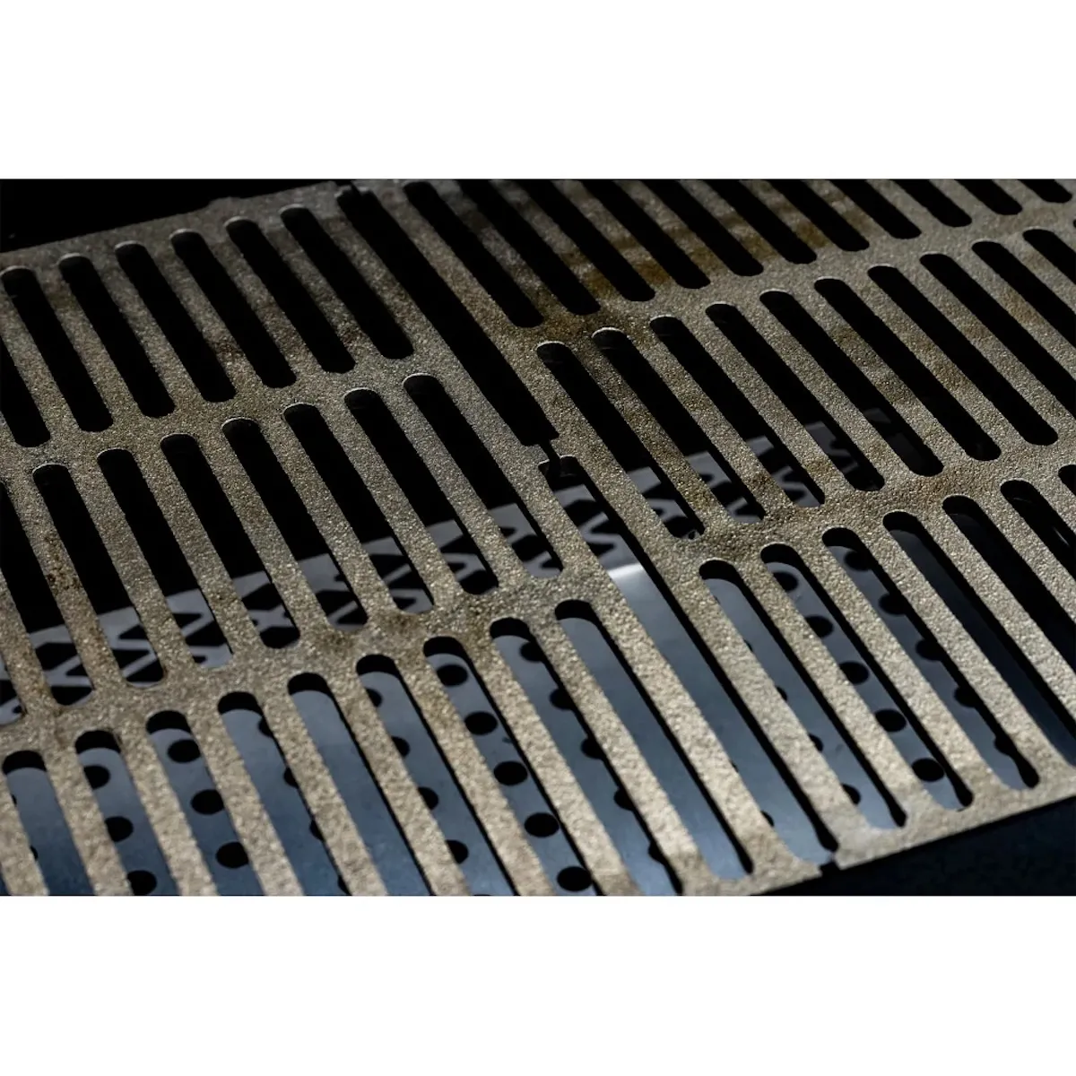 Большие регулируемые заслонки обеспечивают точное управление воздушным потоком, а полноразмерный съемный зольник упрощает очистку. Ручка крышки имеет удобную резиновую рукоятку и остается прохладной на ощупь, а профессиональный датчик температуры имеет светящиеся в темноте значения.