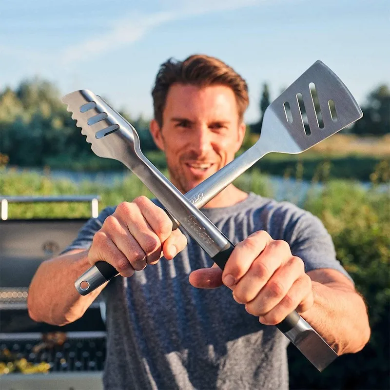 Премиум набор для барбекю из 3-х предметов в чехле – это первое, что Вам понадобится для приготовления, если Вы уже приобрели или же только заказали гриль. Входящие в комплект набора инструменты выполнены из высококачественной пищевой нержавеющей стали. Щипцы, лопатка и вилка – это все, что вам будет необходимо для быстрого старта.