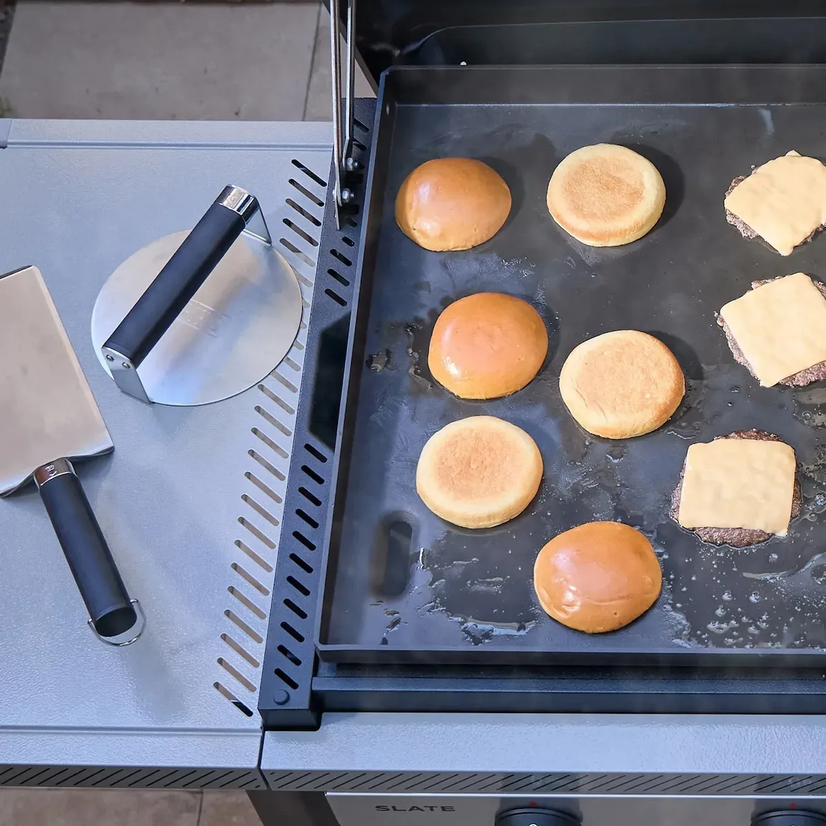 Пресс для бургеров из нержавеющей стали WEBER предназначен для приготовления идеально тонких и хрустящих бургеров «смеш» на сковороде. Прочная конструкция из нержавеющей стали обеспечивает равномерное давление, а нейлоновая ручка гарантирует надежный и удобный захват. После использования пресс можно мыть в посудомоечной машине.