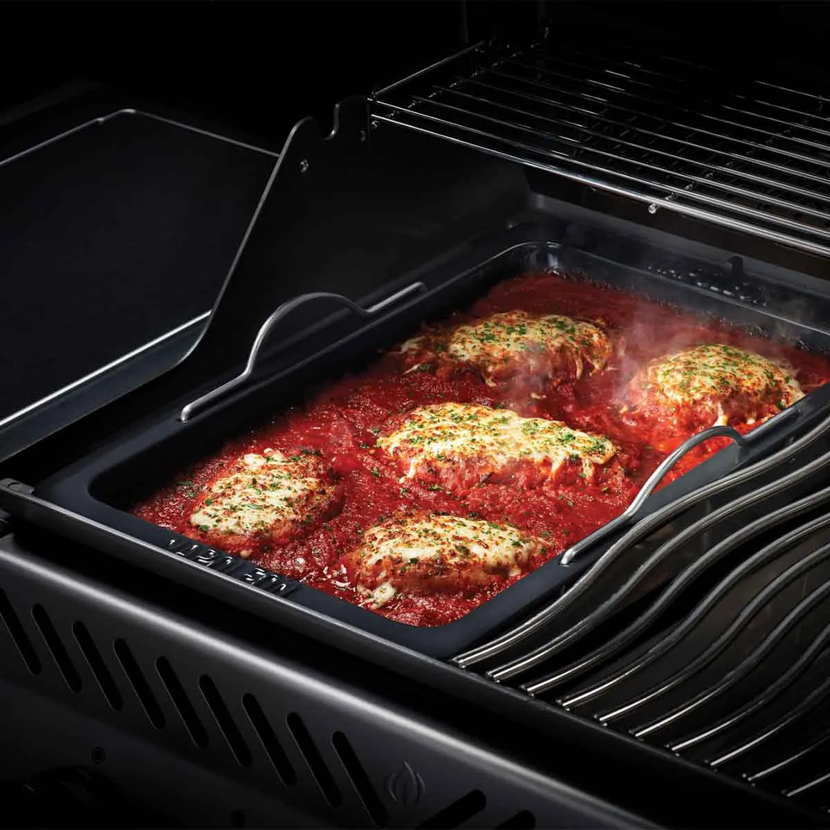 Эмалированный глубокий противень для запекания Napoleon идеально подходит для газовых грилей Rogue 425 и 625, но может также использоваться в газовых грилях серии Prestige и Prestige PRO. Просто снимите одну часть решетки и поместите этот практичный противень в гриль. Он предназначен для непрямого приготовления на гриле: тушения мяса, приготовления запеканок и лазаньи, для выпечки, запекания и много другого. Противень легко устанавливается и извлекается из гриля с помощью ручек.