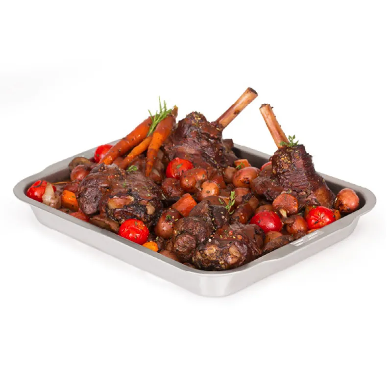 Хотите защитить свой гриль от брызг и капель жира, вытапливающегося в процессе приготовления мяса и рыбы? Часто запекаете крупные куски и тушки птицы на вертеле, и пытаетесь подобрать дополнительную посуду к нему? Наш интернет-магазин рекомендует приобрести универсальный аксессуар, пользоваться которым очень легко и просто. Это фирменный противень для запекания, цена которого вполне доступна.