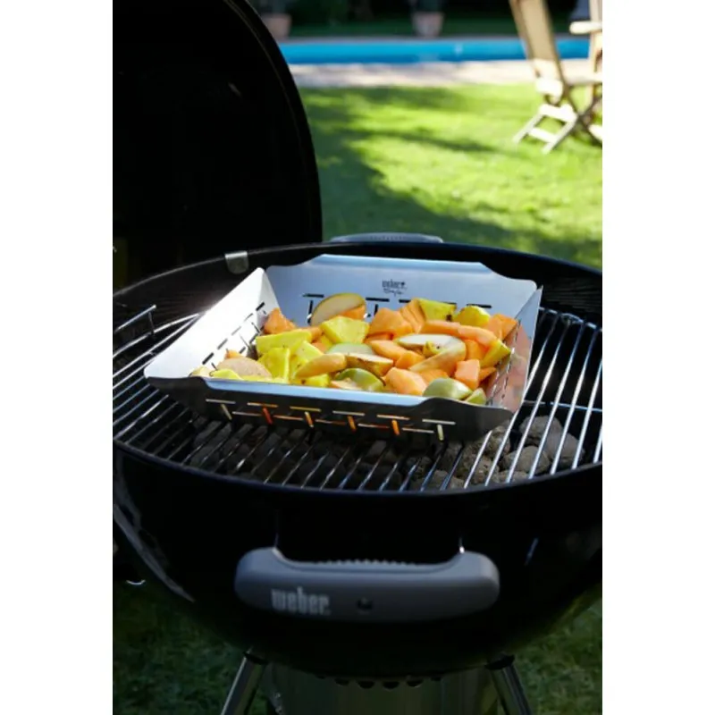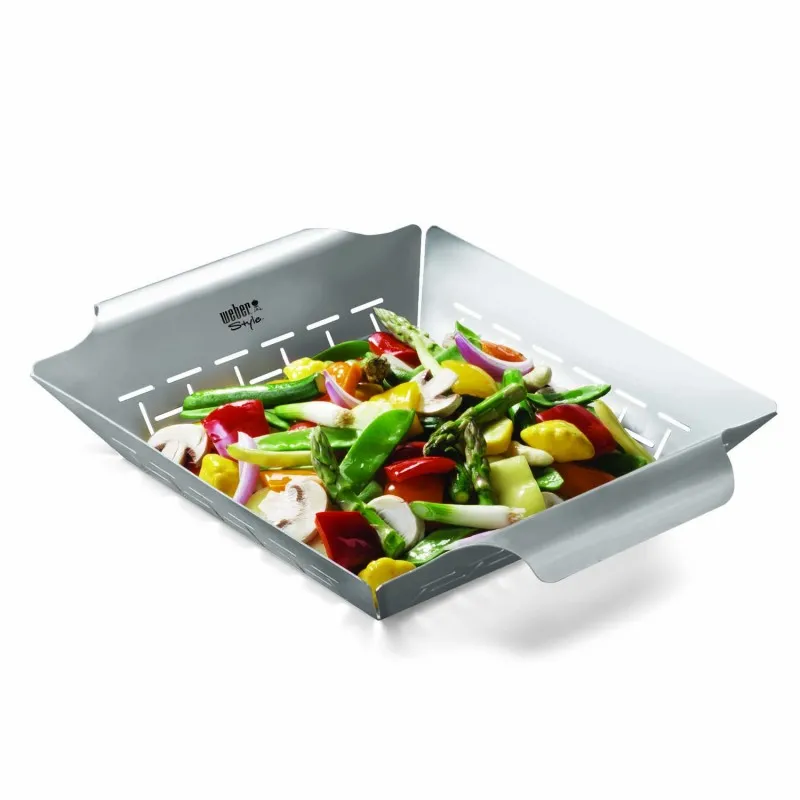 Морепродукты и овощи периодически падают с решётки гриля, доставляя вам лишних хлопот? Если ответ «да», вам обязательно пригодится этот перфорированный противень. Он прекрасно подходит для грилей бренда «Вебер», диаметр которых составляет 47 см и 57 см.
