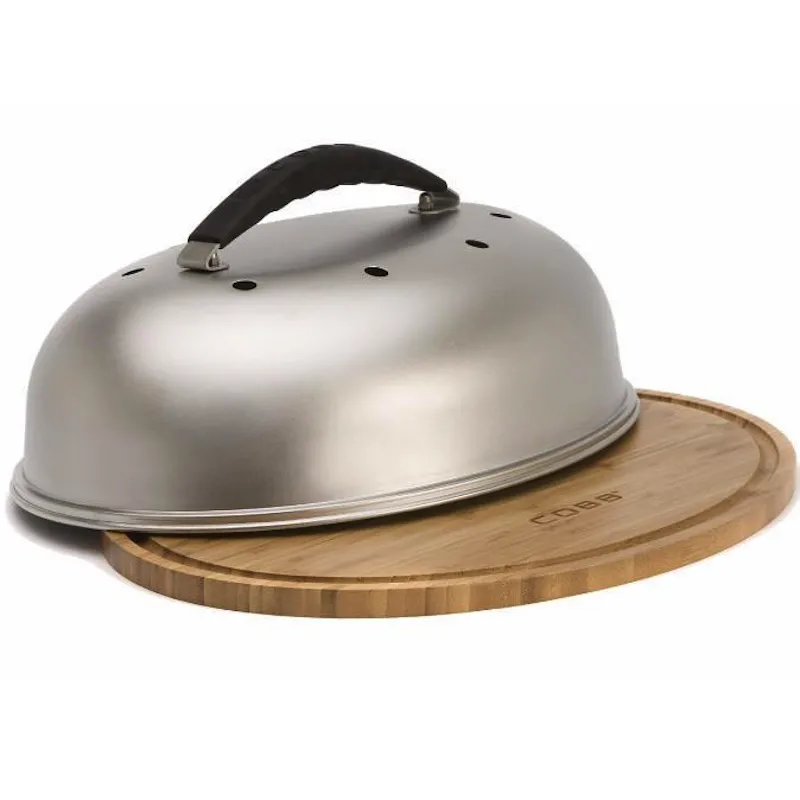 Разделочная доска Cobb Supreme. Совмещает функции подноса. Предусмотрен специальный круговой паз для установки крышки от гриль Cobb Supreme . На таком подносе блюдо очень долго не остывает. Материал-бамбук.