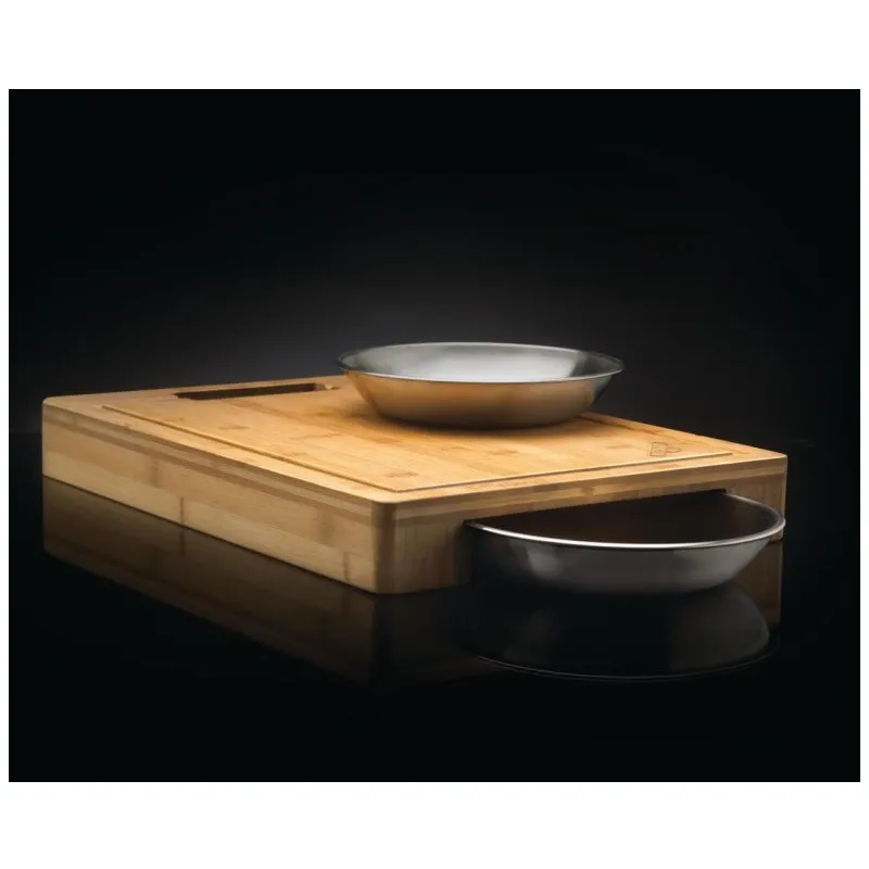 Разделочная доска от Napoleon – это очень практичный аксессуар для барбекю, благодаря которому Ваше рабочее место всегда будет выглядеть опрятным и чистым. Доска внушительной толщины, изготовлена из прессованного бамбука. Углы доски закруглены, а поверхность имеет антибактериальные свойства. В разделочную доску встроены две емкости из нержавеющей стали, которые легко выдвигаются, снимаются или прячутся под поверхность доски. Благодаря этим двум емкостям при нарезании можно сразу собирать и утилизировать пищевые отходы. В то же время по краям поверхности доски расположен желоб для стока жидкости, которая сразу попадает в одну из емкостей.