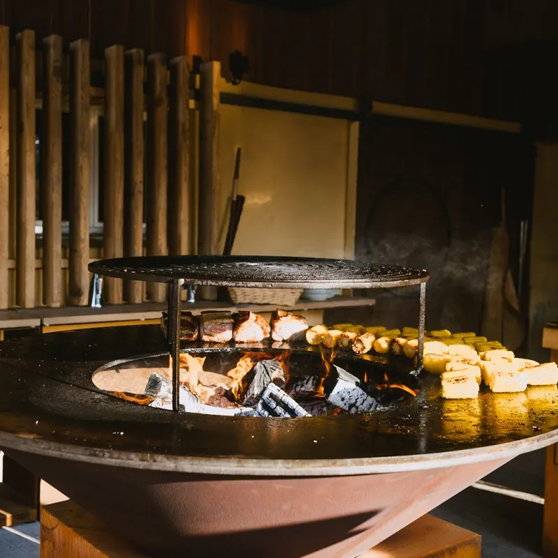 Grill Round 85 — решётка для гриля OFYR 85. Не можете придумать, как добавить пространства в зону гриля OFYR? Решение придумал сам производитель. Для комфорта почитателей брендовой продукции была выпущена высокопрочная решетка в гриль Ofyr. Двухсекционное изделие позволяет дополнить место для приготовления пищи ещё одним ярусом. Просто установите подставку над очагом и положите сверху решётку.