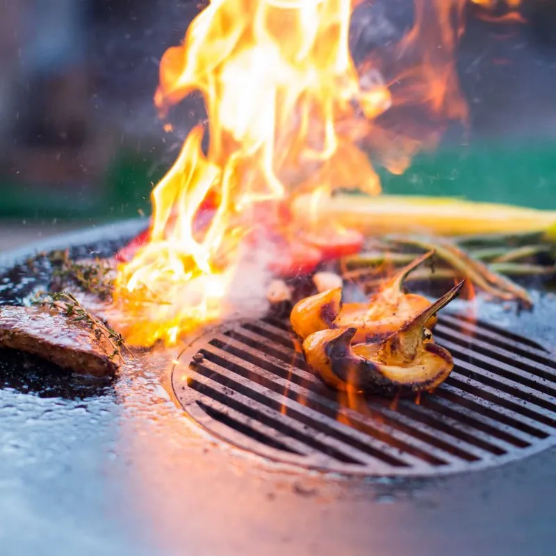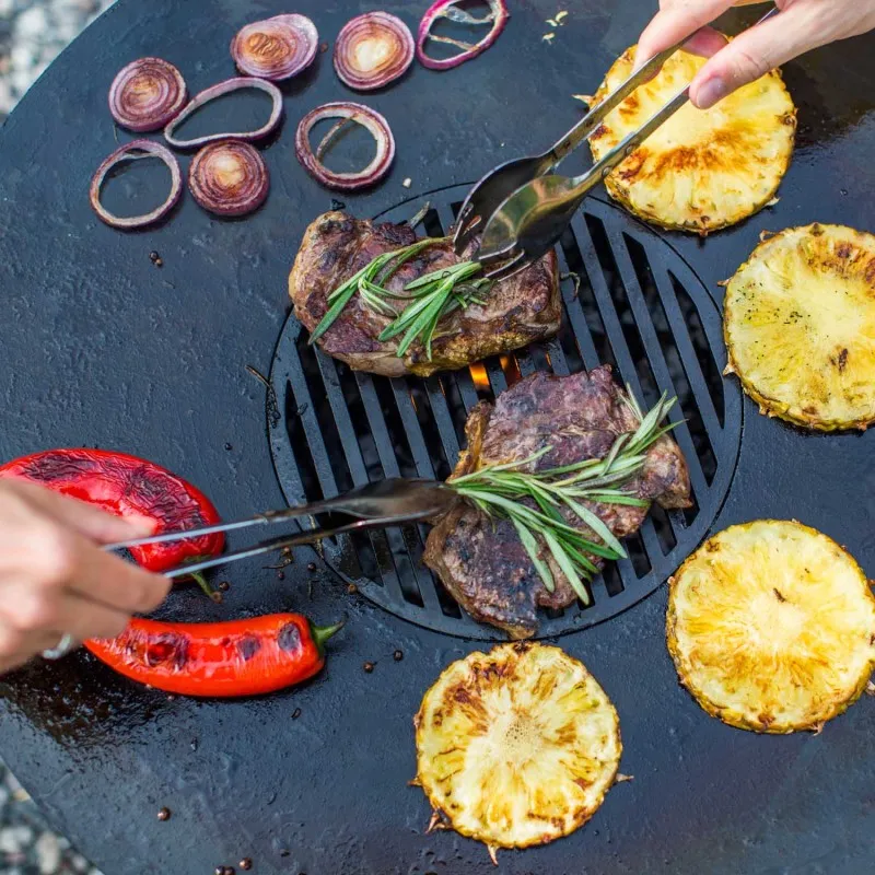Решетка гриль UNO для приготовления продуктов на открытом огне. Незаменима при финишной поджарке стейков и овощей гриль. Создает красивый рисунок на мясе и придает ему тонкую хрустящую корочку с легким ароматом дыма. Дополнительно может быть укомплектована подставкой UNO STAND, которая позволит установить гриль на большей высоте, что уменьшит вероятность сгорания продуктов и обеспечит возможность подбрасывать дрова в очаг не снимая гриль.