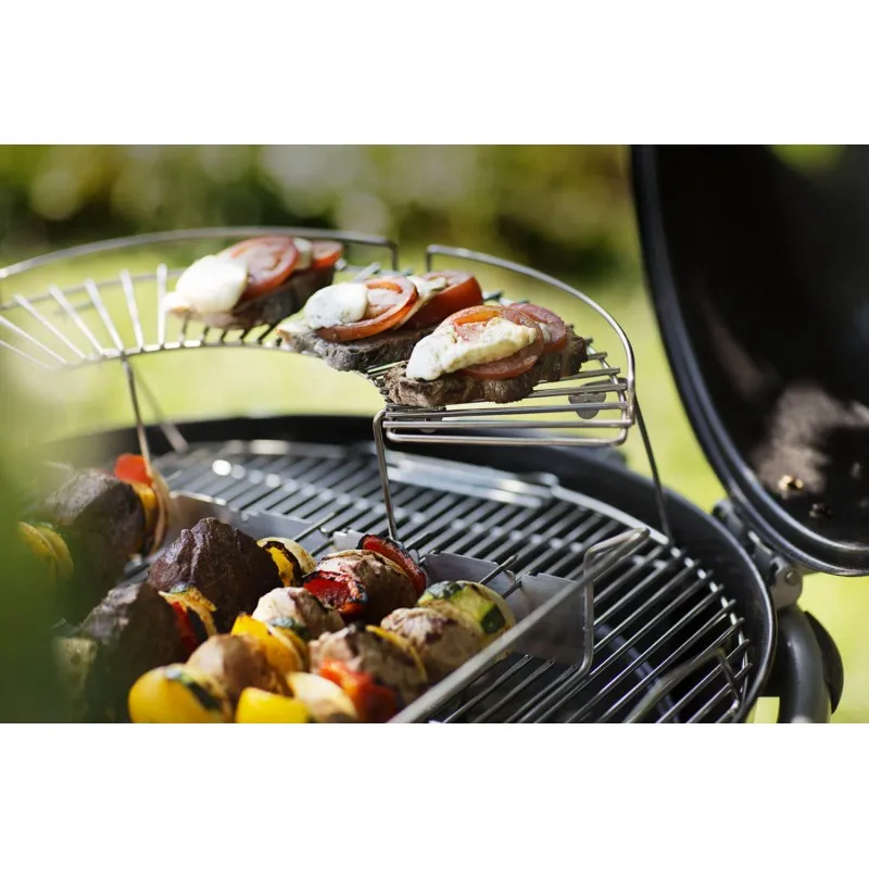 Подходит для грилей Ø 60 см . Расширяет зону барбекю примерно на 500 см². Съмные ножки для экономии места при хранении. Материал: нержавеющая сталь.