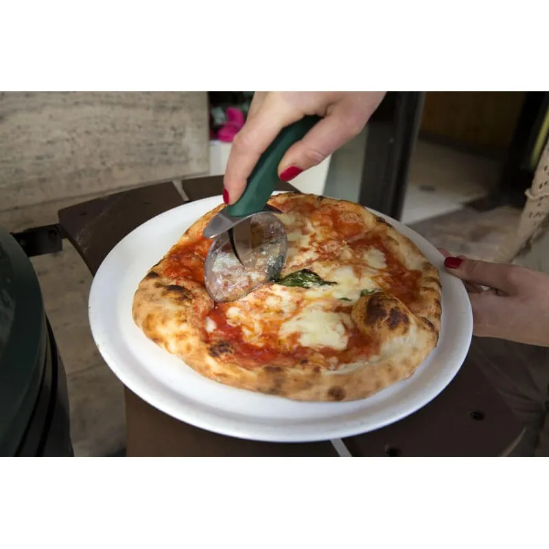 Роликовый нож для пиццы Big Green Egg - это незаменимый инструмент для легкого разделения пиццы на куски. Легким движением руки, круглый режущий нож, разрезает пиццу на запланированные Вами кусочки. Острый нож, с легкостью разрезает, даже, толстые корки пиццы, что позволяет использовать роликовый нож для профессионального использования, например, в пиццериях. Для обеспечения безопасности при резке, нож оснащён защатным экраном, отделяющим режущее лезвие и ручку друг от друга, и, не позволяют руке соскользнуть. Так как, роликовый нож очень острый, с ним надо работать аккуратно и ни в коем случаи не давать детям.