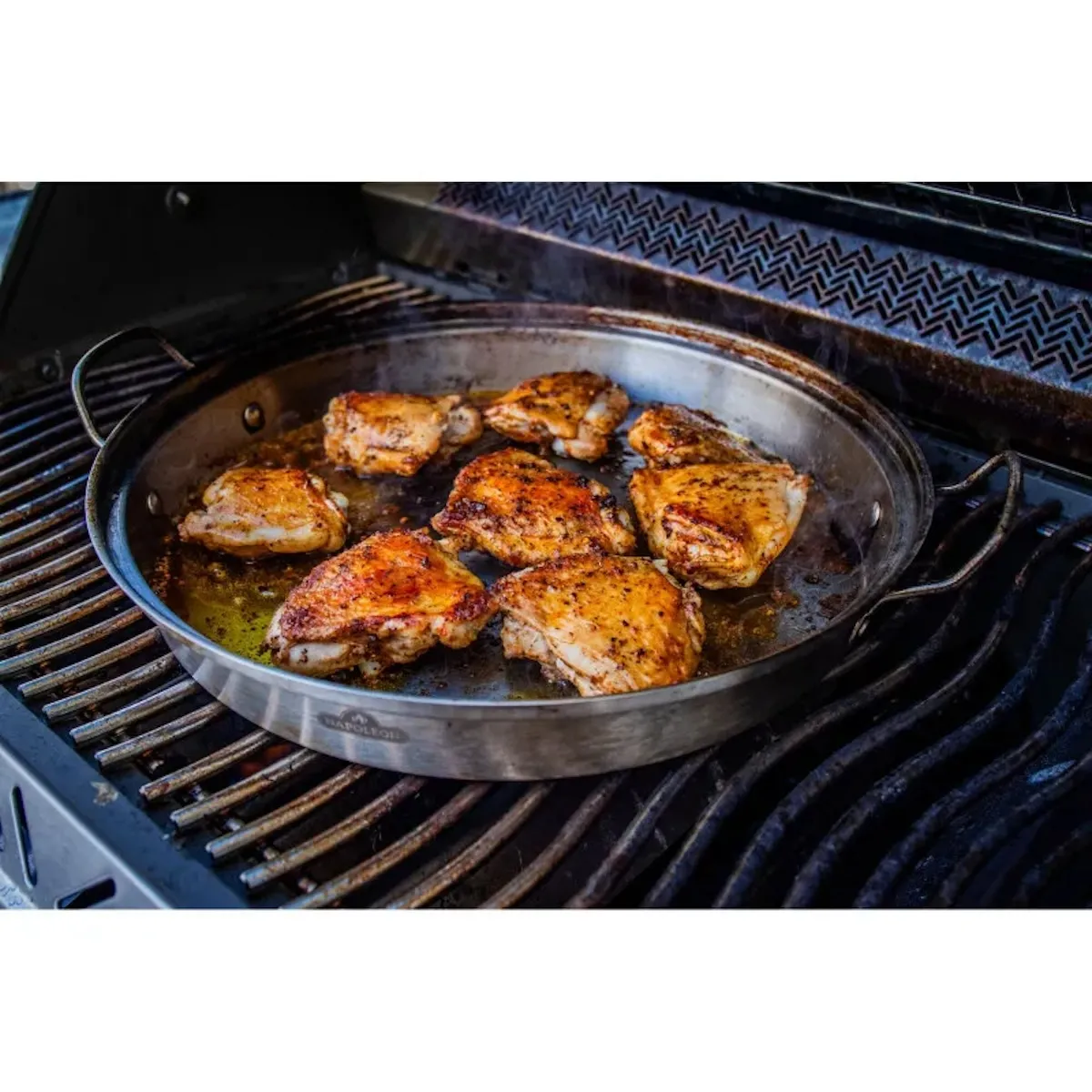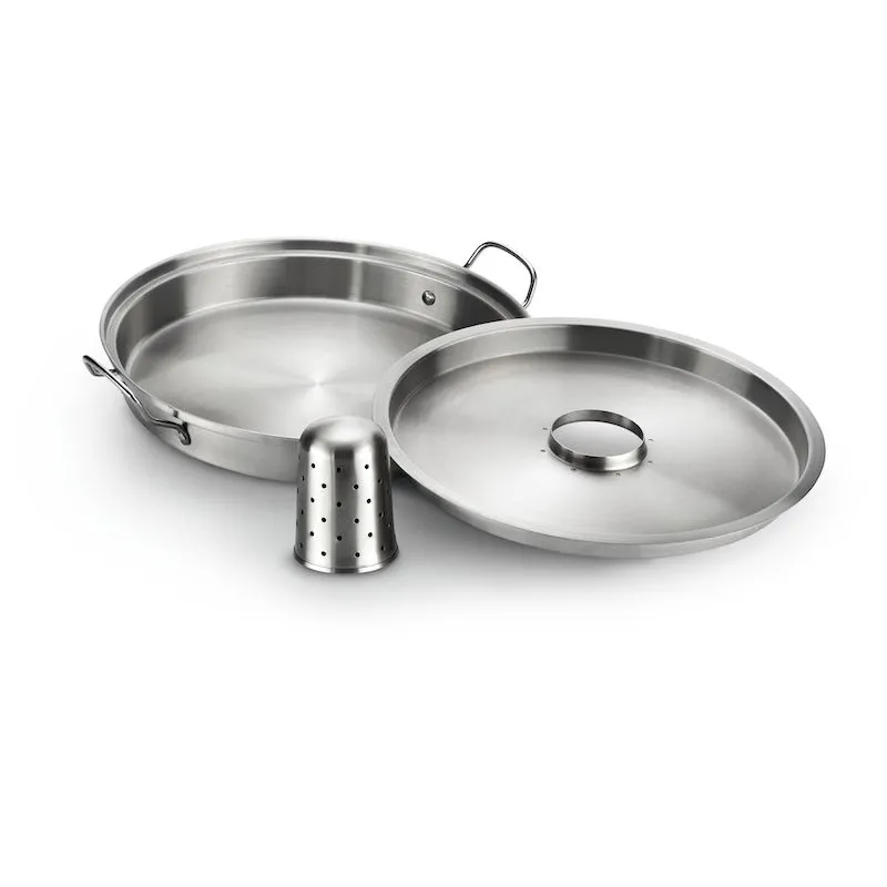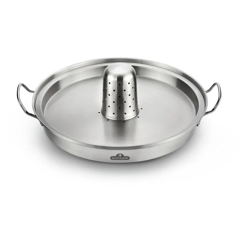 Необходимый аксессуар для всех любителей блюд из птицы. Вы можете легко приготовить полное меню из жареного цыпленка, гарниров и соуса с жаровней для курицы «Наполеон». Набор из 3 предметов включает в себя сковороду с плоским дном, вкладыш для крышки и ароматический конус и придает вашей птице удивительно сочный и ароматный вкус.