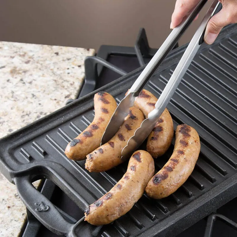 С помощью профессиональных щипцов LoveGrill из нержавеющей стали вы мгновенно положите, перевернете или достанете приготовленные в гриле блюда. Щипцы имеют удобную противоскользящую силиконовую накладку на ручке. Блокирующий механизм также служит крючком для подвешивания.