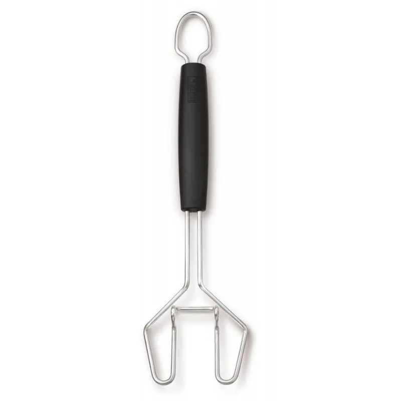 Съемник поставляется в базовой комплектации, включающей удобную эргономичную ручку с покрытием SoftTouch. Для хранения в подвешенном состоянии используется специальное кольцо крепления. Может использоваться для безопасного и легкого снятия центральной части системы барбекю Gourmet, GBS, решетки для жарки.
