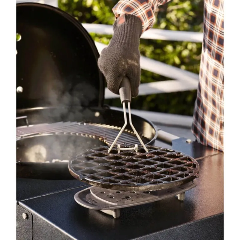 Съемник для решетки Weber Original GBS был специально спроектирован и создан для простого и безопасного подъема 30-сантиметровой центральной части решетки для готовки Weber GBS. После того, как вы сняли центральную секцию решетки, можно поместить любые другие совместимые аксессуары Weber GBS на ее место.
