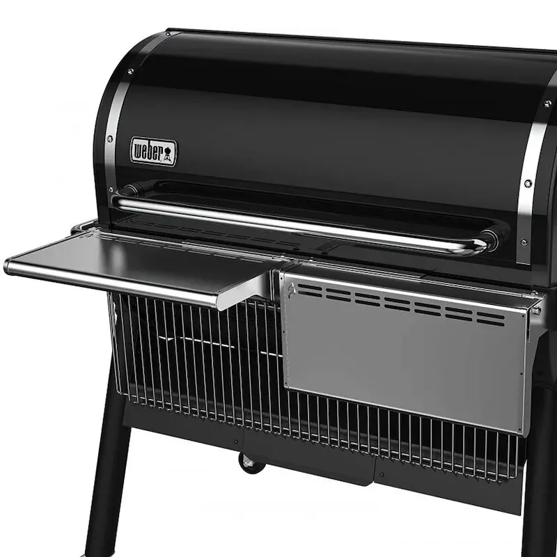 Разработан для пеллетных грилей Weber SmokeFire EX6. Передняя полка из нержавеющей стали придает около 2250 квадратных сантиметров рабочему пространству. Можно расположить до 9 кг еды на полку и аксессуары для гриля, включая инструменты, блюда и доски для нарезки. Зажимы внизу удерживают верхнюю подставку, когда она не используется.