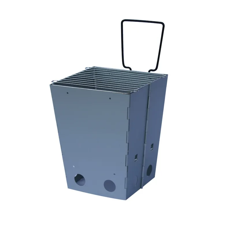 Любой угольный гриль не обойдётся без такого важного устройства, как складной стартер для розжига углей GrandHall. Это необходимый аксессуар, который сможет значительно сократить время розжга углей, не заставляя вас ждать. Стартер всего лишь за пятнадцать минут нагреет угли до нужного уровня температуры, чтобы вы смогли приготовить мясо, овощи, либо любую другую пищу на своём гриле. Помимо этого, устройство для розжига может выступать как вполне самостоятельное и автономное, поскольку обладает специальной практичной решёткой, которая даст вам возможность и без наличия установки гриля приготовить то, что душе угодно.