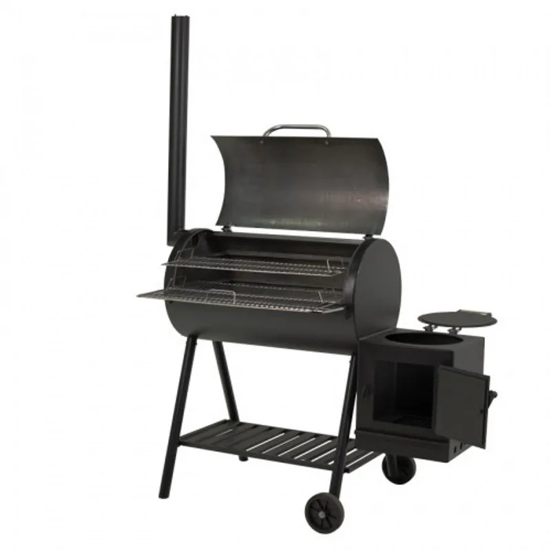 Смокер – это, прежде всего, удобный и функциональный гриль с двумя уровнями решеток. Также гриль сочетает в себе функции печки под котел и самое главное – настоящего смокера. Возможность готовить одновременно 2 и более блюда отличная возможность приготовить разнообразное гриль меню не тратя на это пол дня. Главное преимущество смокера – это возможность готовить блюда горячего копчения не покупая отдельно коптильню, а просто заменив днище. Внутри смокер не окрашивается для того, чтобы краска во время приготовления не попадала на них.