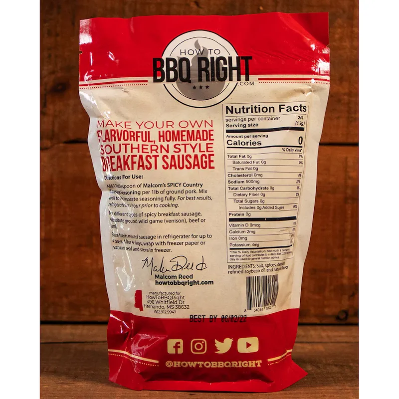 Указания по применению: Добавьте 1 столовую ложку приправы Malcom's SPICY Country Sausage Seasoning на 1 фунт свиного фарша. Хорошо перемешайте, чтобы полностью включить сезоны. Для достижения наилучших результатов охладите в течение 1 часа перед приготовлением.