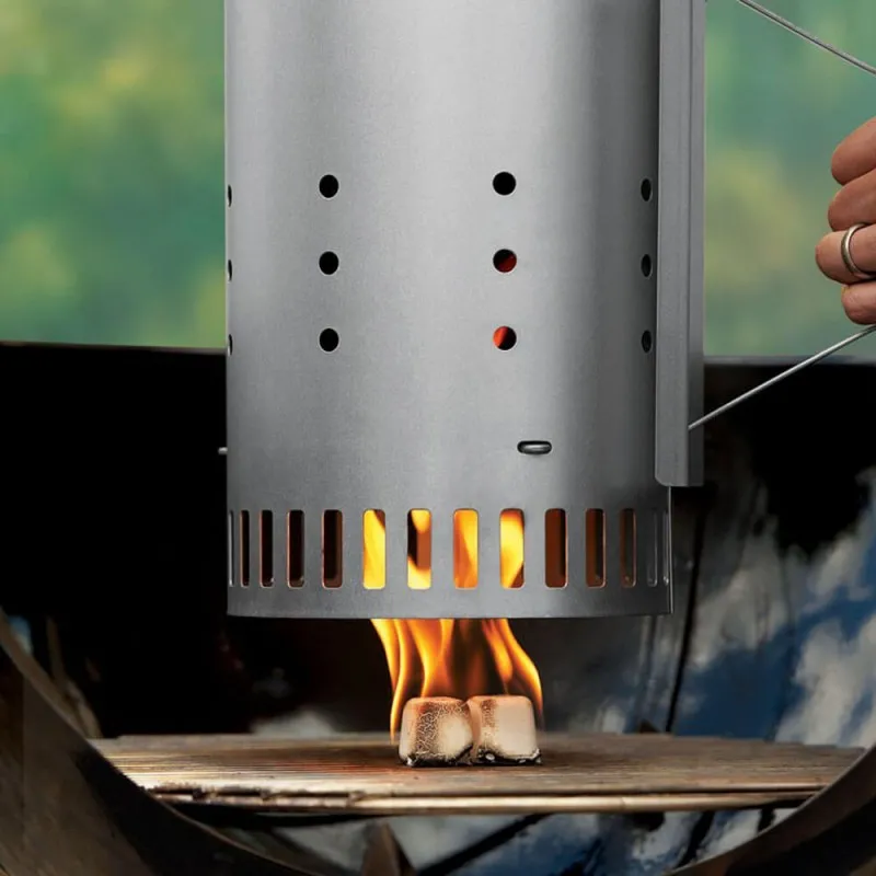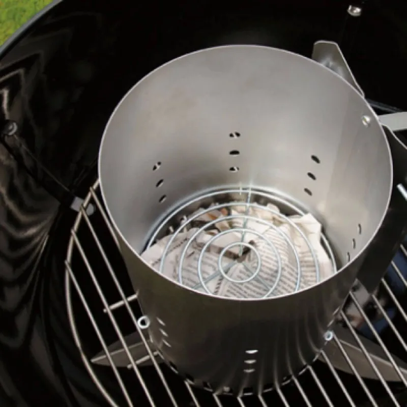 Стартер для розжига Вебер Weber Chimney Starter способен быстрее нагнетать угли или брикеты до температуры приготовления с более равномерным распределением тепла для более эффективного использования углей или брикетов.