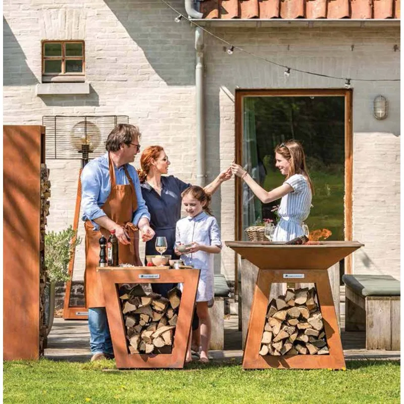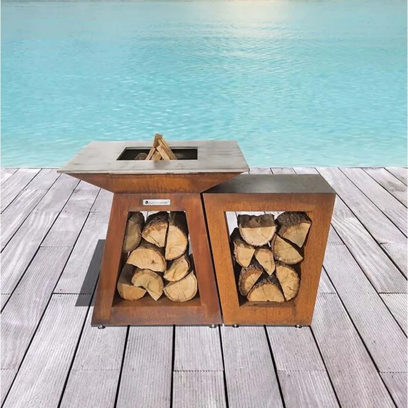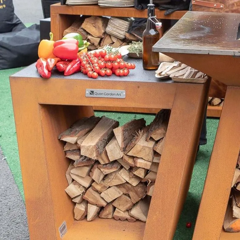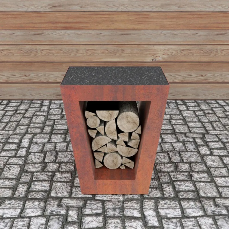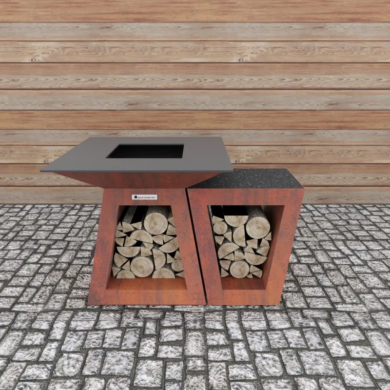Небольшой приставной столик для дровянных грилей Quan Quadro Premium Corten. Обеспечивает дополнительное пространство для приготовления пищи. Удобная гранитная столешница и место для хранения под столешней.