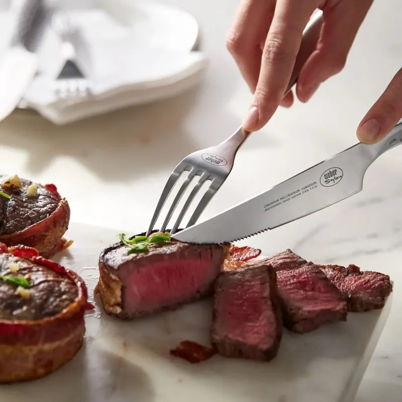 Два ножа для стейка, сделанные из нержавеющей стали, обеспечивают наилучший эргономичный захват, а их острые лезвия легко справятся с нарезкой любого мяса. Пусть на вашем столе будут только стильные и удобные приборы.