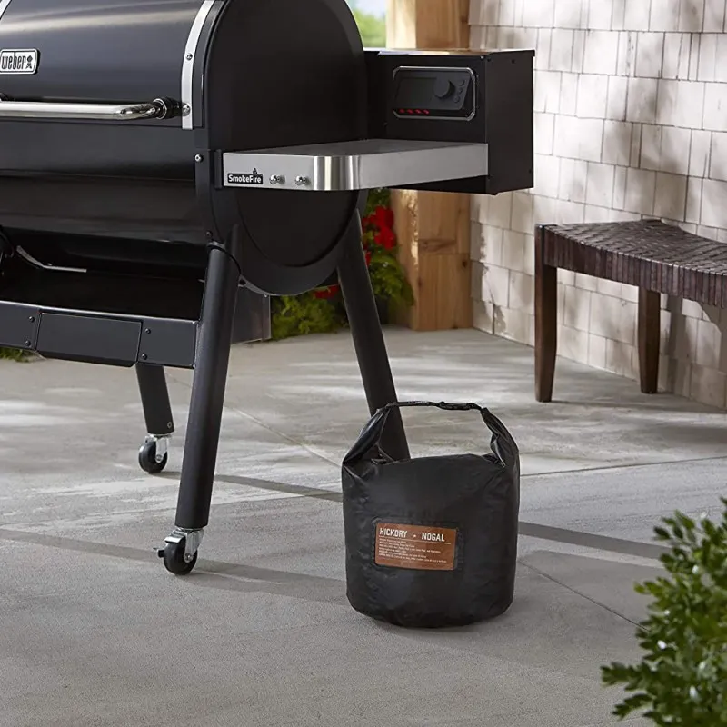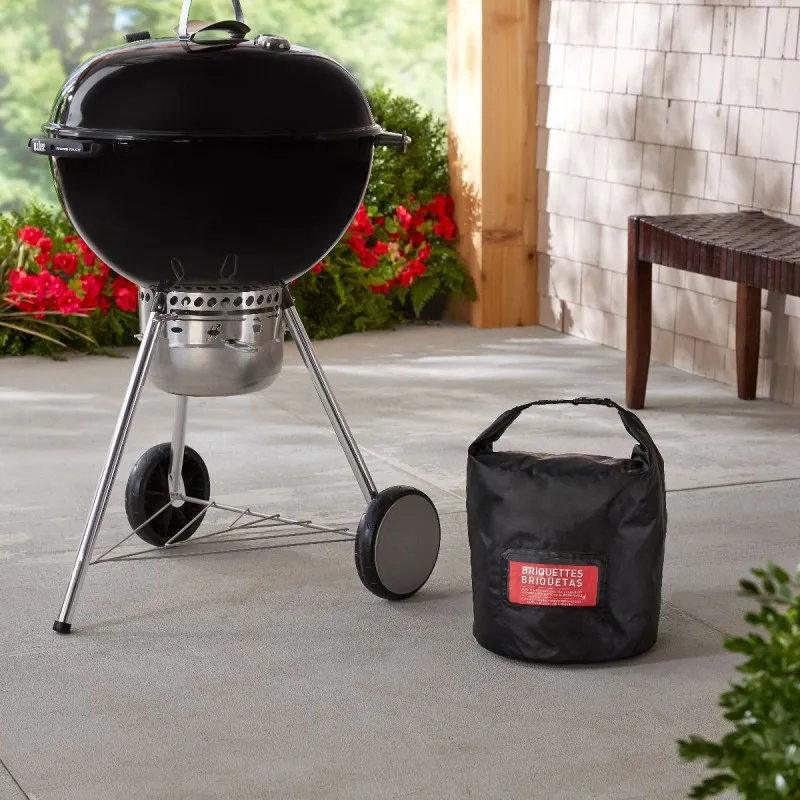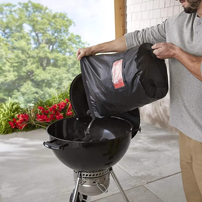 Погодостойкая сумка для хранения топлива сохраняет ваши древесные гранулы или уголь сухими и готовыми к барбекю! Его прочная конструкция вмещает до 9 килограм топлива и имеет ручку для удобной переноски.