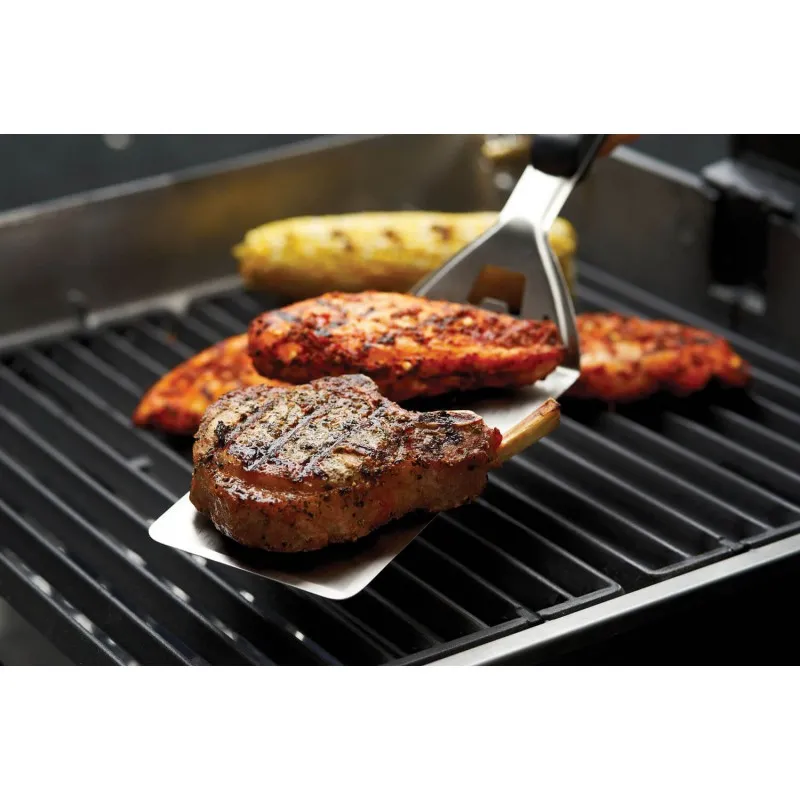 Пытаетесь подобрать аксессуары, с помощью которых можно снимать готовую еду с гриля, и перекладывать ее на блюдо для подачи или на тарелки? Для таких целей идеально подойдет длинная лопатка, купить которую недорого можно в нашем интернет-магазине. Она имеет вытянутую прямоугольную форму и удобную рукоять, которая не нагревается, и не скользит в руке.