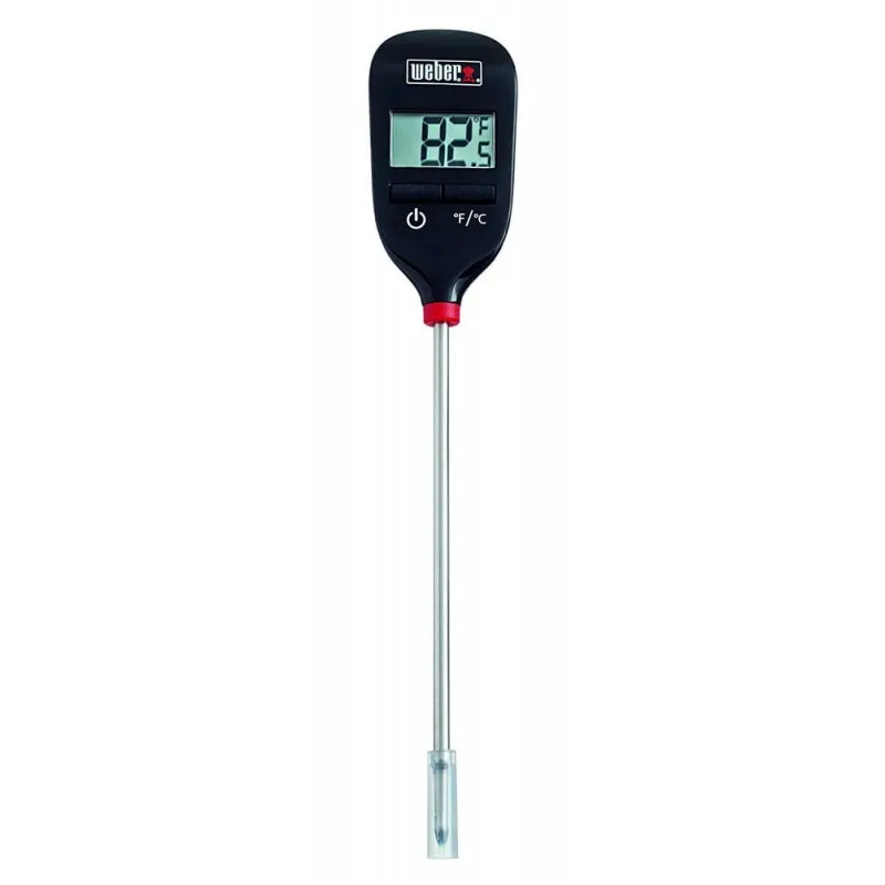Наш самый популярный термометр - оригинальный термометр мгновенного считывания Weber, который дает показания за секунды. У него большой дисплей и тонкий зонд, который позволяет легко вставлять датчик в мясные куски. Маленький, умный и аккуратный, этот термометр - идеальный гаджет для серьезных энтузиастов барбекю.