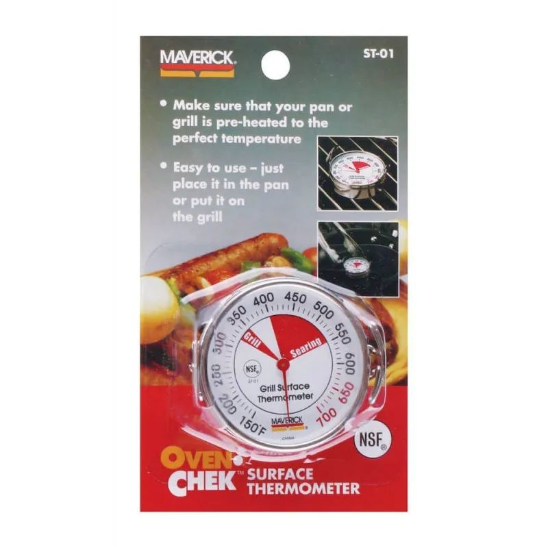 Американский производитель Maverick уже почти 40 лет радует людей со всего мира своими аксессуарами для грилей и печей, разнообразными принадлежностями и приборами для кухни. Вся продукция отличается высоким качеством и доступными ценами. Среди всего ассортимента особенным спросом пользуется термометр для жарочной поверхности, позволяющий также измерить температуру решеток и сковородок. Он изготовлен из высококачественной нержавеющей стали и термостойкого стекла. Используя его, вы быстро и с высокой точностью определите достаточно ли нагрета жарочная поверхность. Это особенно важно, чтобы вкусно приготовить блины, омлеты, отбивные или стейки. Такая возможность пригодится не только начинающим кулинарам, но и опытным шефам — ведь в сложных рецептах всегда важна максимальная точность. Подобные детали и позволяют отличить профессионала от аматора.