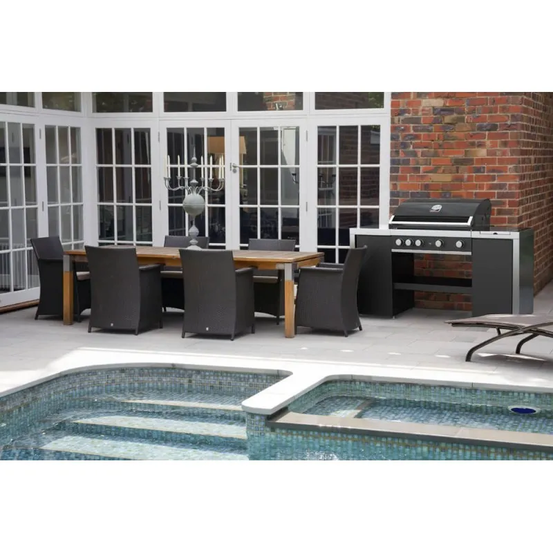 Тумба-подставка Maxim GT4SB имеет классический чёрный цвет, что позволит грамотно вписаться в любое пространство летней террасы, веранды, или сада и дополнить их. Устройство позволяет грамотно сэкономить и распределить свободное место для готовки мяса, морепродуктов или овощей. Подставка даст возможность с лёгкостью готовить на ней, после чего сложить в неё посуду. А встроенная боковая конфорка позволит не отходя от гриля приготовить гарнир, суп или соус.