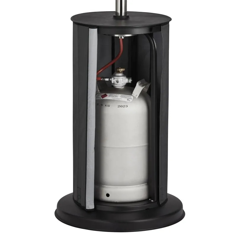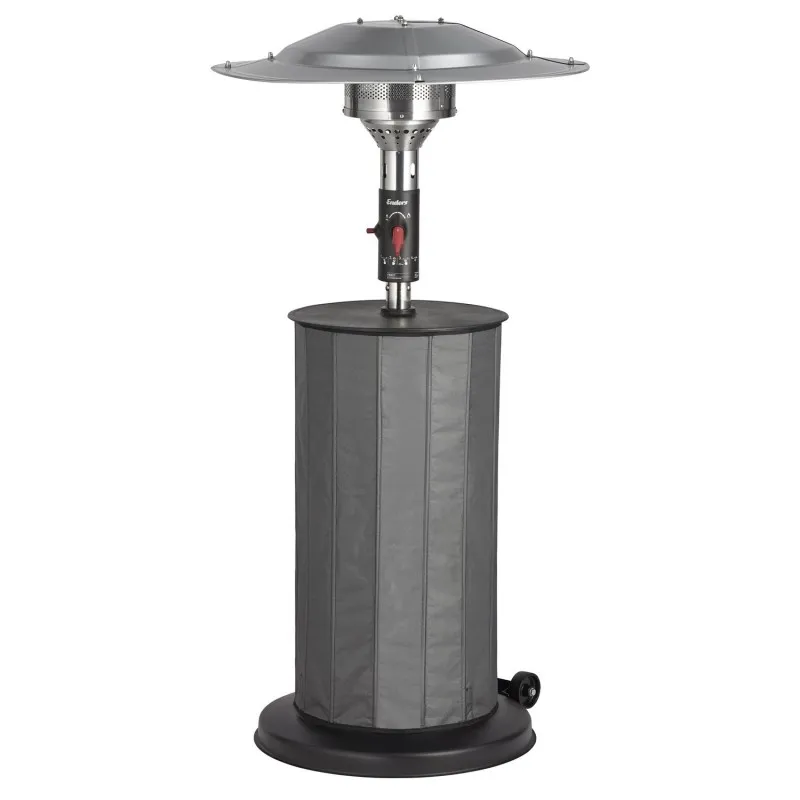 Вуличний газовий інфрачервоний обігрівач ENDERS FANCY виготовлений з високоякісної нержавіючої полірованої сталі і високоякісного поліестеру, стійкого до атмосферних впливів. Сучасний трендовий дизайн обігрівача лаконічний і поєднує в собі зручності складання і експлуатації за рахунок знімного кожуха з магнітною фіксацією і складного штока до 155 см заввишки для транспортування і зберігання. На зручному вбудованому столику з ударостійкого пластику можуть розміститися напої для гостей, а потужна пальник 8 кВт дозволить заощадити витрату газу і забезпечить тепле і затишне перебування на відкритому повітрі або терасі. Даний вуличний обігрівач призначений для локального обігріву за допомогою інфрачервоних хвиль. При горінні газового пальника інфрачервоні хвилі концентруються в центрі рефлектора і, відбиваючись від його дзеркальної поверхні, розсіюються в діаметрі до 9 м. Предмети і люди, що знаходяться в радіусі дії, також відображають і частково поглинають теплової інфрачервоний потік, внаслідок чого нагріваються. Одними з основних переваг даної моделі є доступна ціна і висока ефективність.