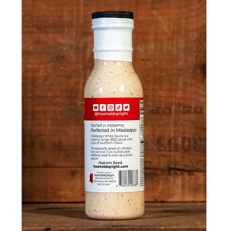 Розпочато в Алабамі, вдосконалено у Міссісіпі. Білий соус Міссісіпі - вершковий, гострий соус барбекю з сильним південним смаком. Він особливо гарний для курки, але ми любимо його з рваною свининою, морепродуктами, яловичиною і навіть як соус для піци!