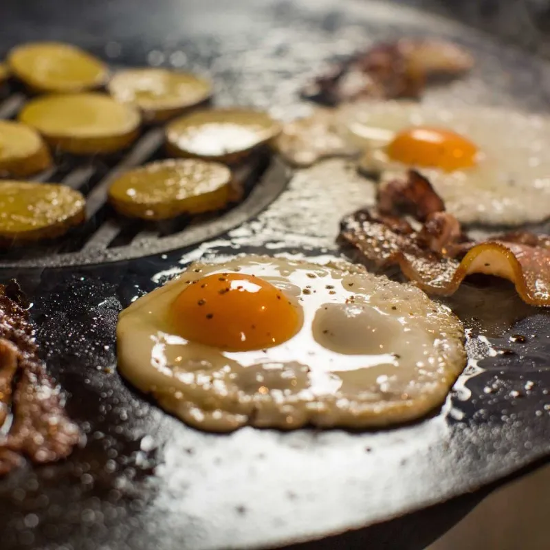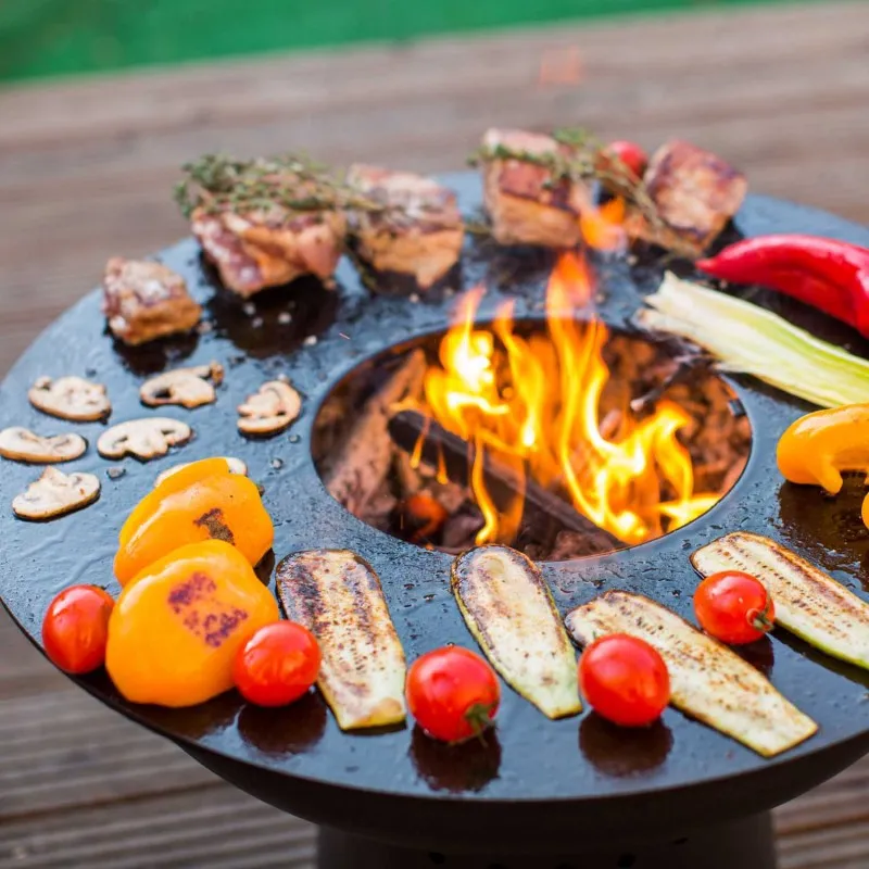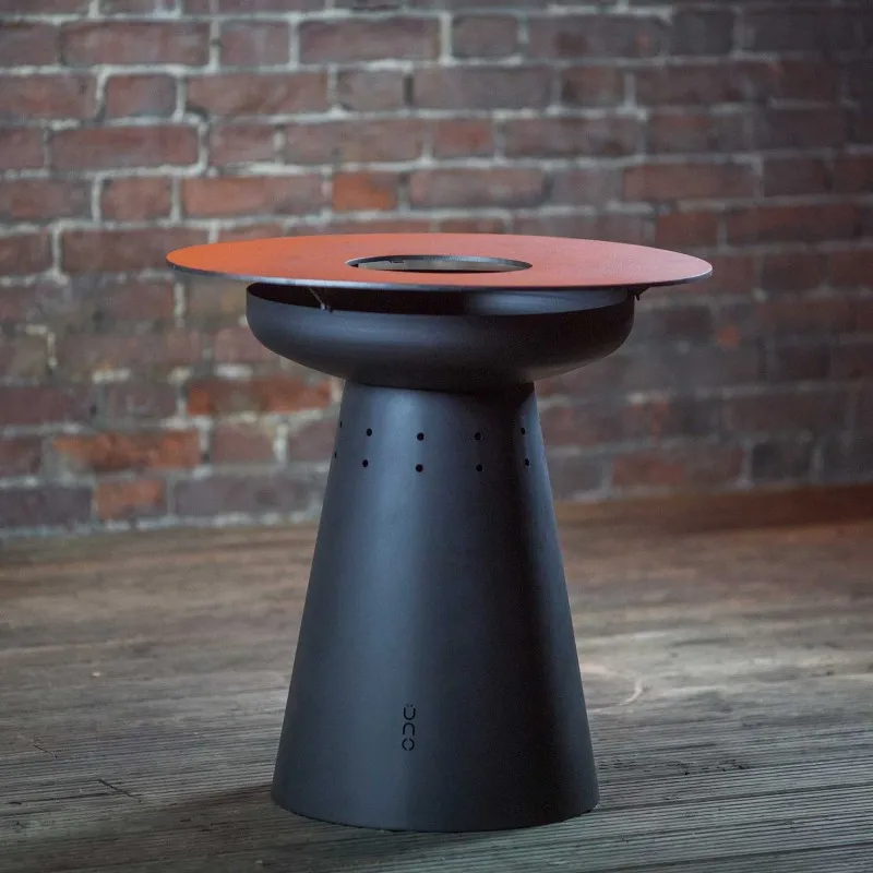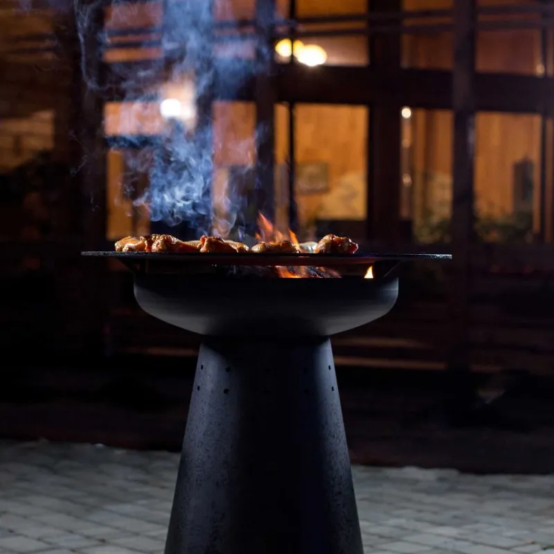 Гриль-мангал на дровах UNO+ це стаціонарний барбекю мангал з поверхнею для смаження. Він представляє з себе кругле вогнище, на яке встановлюється поверхня для смаження. Вогонь горить в чаші-топці нагріває поверхню для смаження до 220-300 градусів. Висота барбекю розрахована на комфортне приготування їжі стоячи навколо мангала. При цьому зручний навіть людям невисокого зросту. Система вентиляційних отворів в тумбі мангала і топці забезпечують оптимальний приплив повітря для рівномірного горіння вогню. UNO+ сконструйований таким чином, що його основа завжди залишається холодною, а попіл і зола потрапляють в тумбу-пеплоприймач, завдяки цьому барбекю мангал можна встановити на будь-яку поверхню, в тому числі на газон або дерев'яну підлогу.