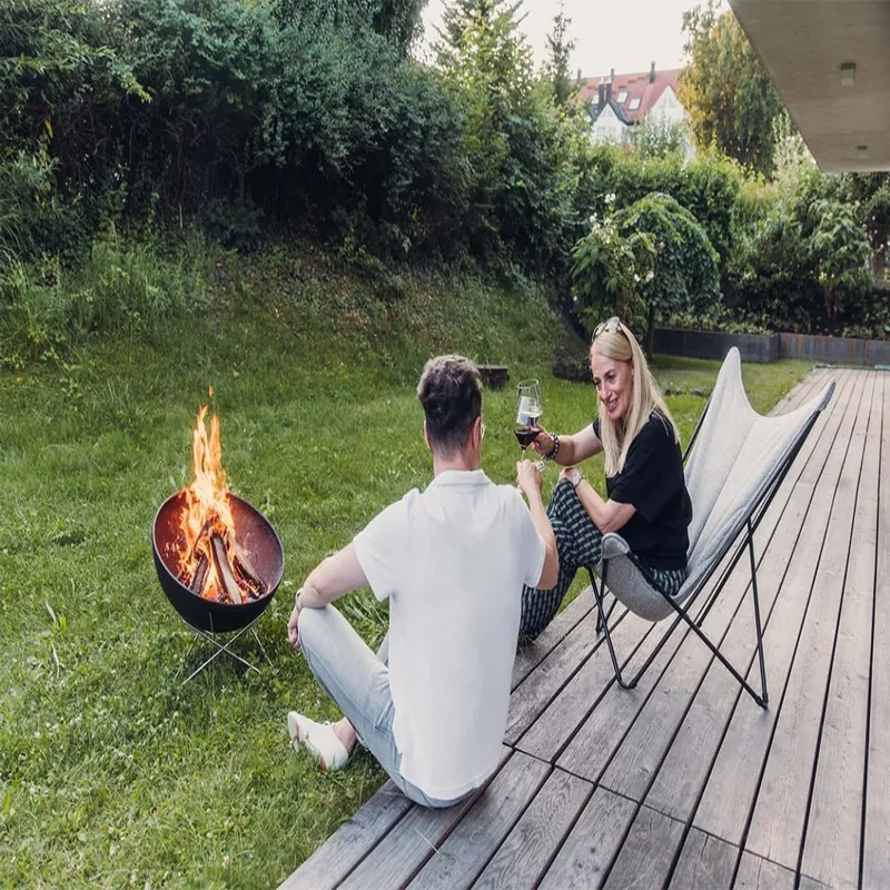 Гриль - вогнище Hoefats BOWL 57 Fire Lounge Set flex - в комплект поставки входить чаша для вогню, BOWL 57 лоток для золи, BOWL 57 підставка-штатив, BOWL 57 підставка "зірка" З набором BOWL ви отримуєте ідеальний аксесуар, що гнучко адаптується до вашого настрою. Вражаюча багатофункціональна чаша для багаття забезпечує максимальну гнучкість для затишних вечорів біля багаття на терасі або в саду. Всього за кілька кроків і без інструментів ви можете перемикатися між невимушеною вечіркою і лаунж-атмосферою завдяки штативу, що додається, і зіркоподібній підставці. Чорна сталева напівсфера надійно сидить на штативі або зіркоподібній основі та у своїй горизонтальній орієнтації зігріває численних друзів. Нахиляючи півсферу, ви можете захистити полум'я від вітру та ефективно спрямувати тепло саме у потрібному вам напрямку. Як би ви його не повернули, знімний піддон для золи всередині півсфери гарантує оптимальну подачу повітря для зниження димоутворення та легко чиститься.