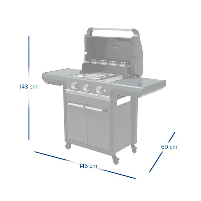 Компактність та надійність. Вага та розміри моделі істотно відрізняються від його побратимів, що дозволяє його легко транспортувати завдяки зручній системі складання, а також завдяки спеціальним коліщаткам та ніжкам, які дозволяють переміщати портативний газовий гриль по будь-якій поверхні.