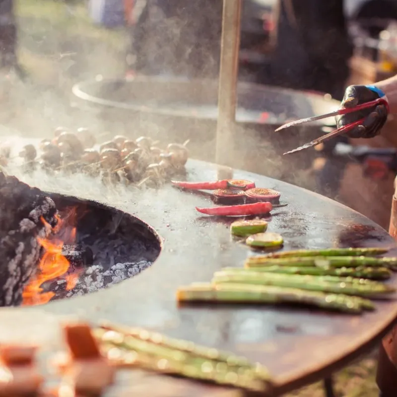 Висока продуктивність мангала, рівномірний і контрольований прогрів поверхні для смаження, зручна робоча висота гриля перетворюють AHOS BIG SHERE в зручний інструмент в руках професійного кухаря. А відкритий вогонь і незвичайний зовнішній вигляд гриля перетворять процес приготування їжі в кулінарне шоу.