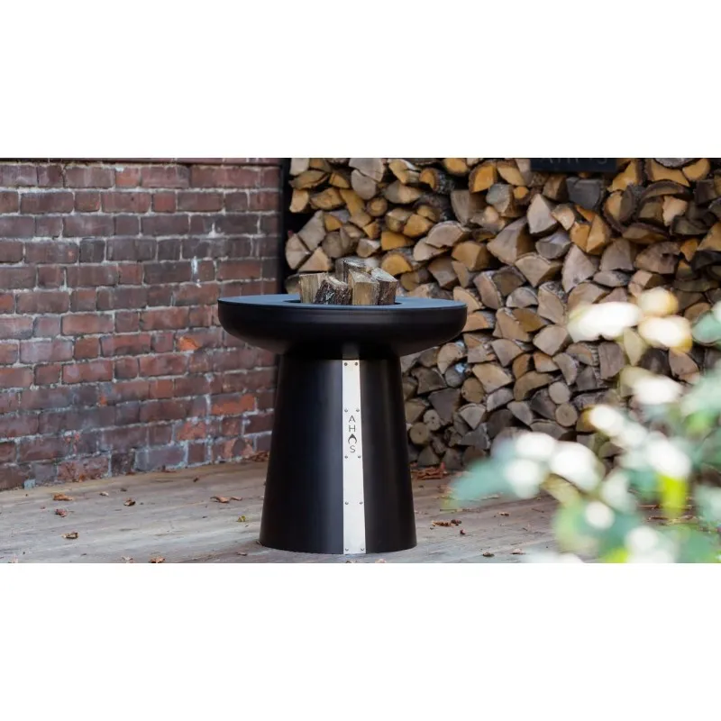 Барбекю на дровах AHOS, це щось зовсім нове в кулінарному світі. Дрова дають відкритий вогонь надають процесу приготування їжі неповторну естетику. Вогнище палаюче в центрі поверхні для смаження розігріває її до 250-300 градусів, а аромат диму надає їжі неповторний смак. Диск для смаження, зроблений з високоміцної вуглецевої сталі з нанесенням багатошарового органічного антипригарного покриття, зроблений з загином до центру топки, що перешкоджає витіканню розпеченого масла за межі барбекю. Осередок BIG SPHERE оснащений новою конструкцією очищення від попелу із знімною нержавіючої купкою. Додатково є можливість встановити на мангал казан, перехідне кільце для шампурів і решітку-гриль. Зніміть жарочну поверхню і AHOS SPHERE перетвориться в гарну вогневу чашу.