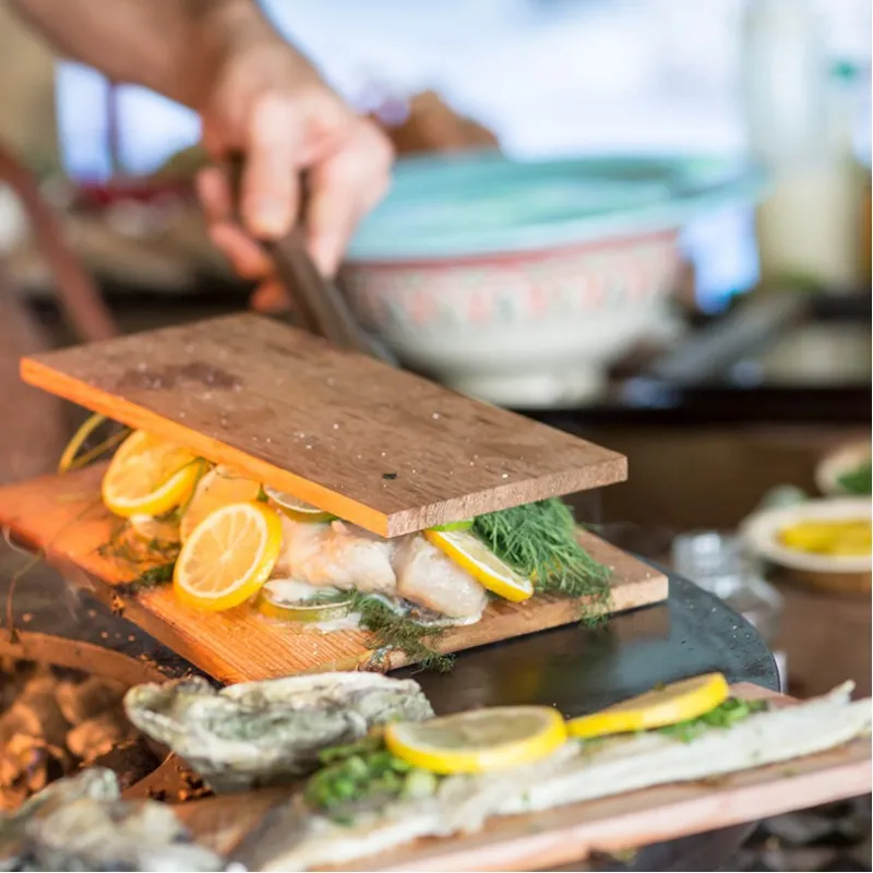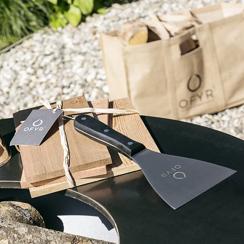 Дошки з деревини кедра приносять нові можливості для приготування унікальних страв на свіжому повітрі. Замочіть їх у воді протягом півгодини і помістіть їх на жарочнe поверхню, розмістіть на них м'ясо, рибу, або будь-який інший продукт щоб додати солодкий, димчастий аромат до вашої їди. Набір кедрових дошок OFYR дозволяє не тільки сповільнити процес приготування на 50% (в їжі залишається більше вологи, що робить її ніжною і соковитою), але і закоптити бажаний продукт.