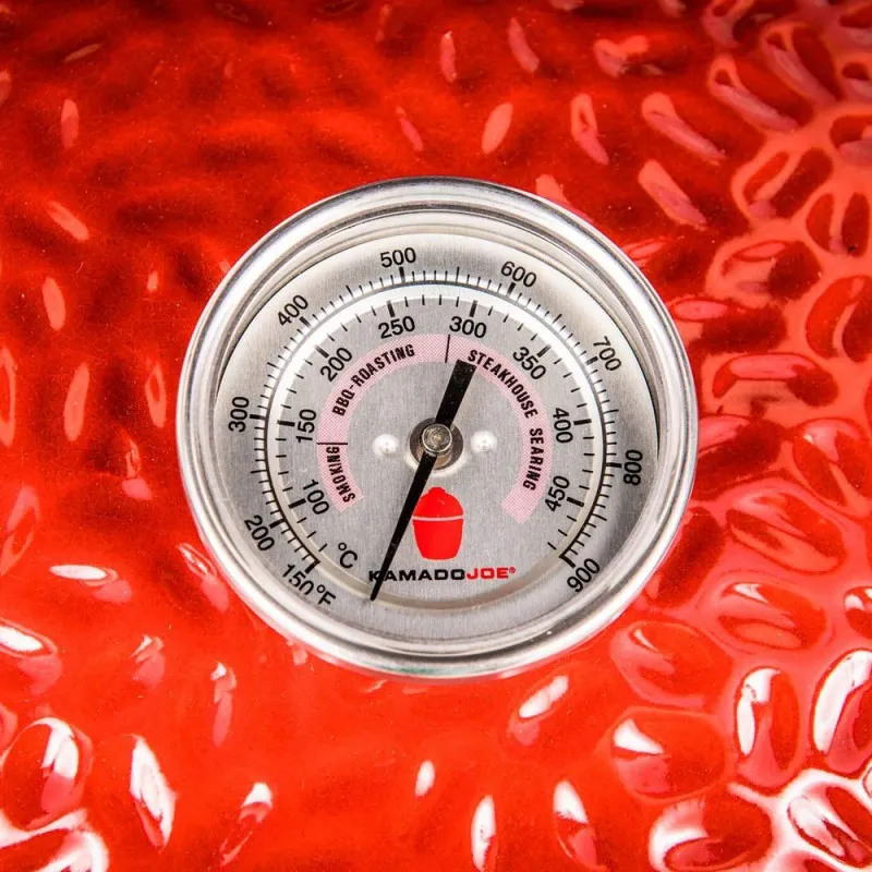 - термометр у кришці, з температурними шкалами за Цельсієм та Фаренгейтом, а також мітками рекомендованих температурних діапазонів для розігріву, грилінгу, копчення та прожарювання;