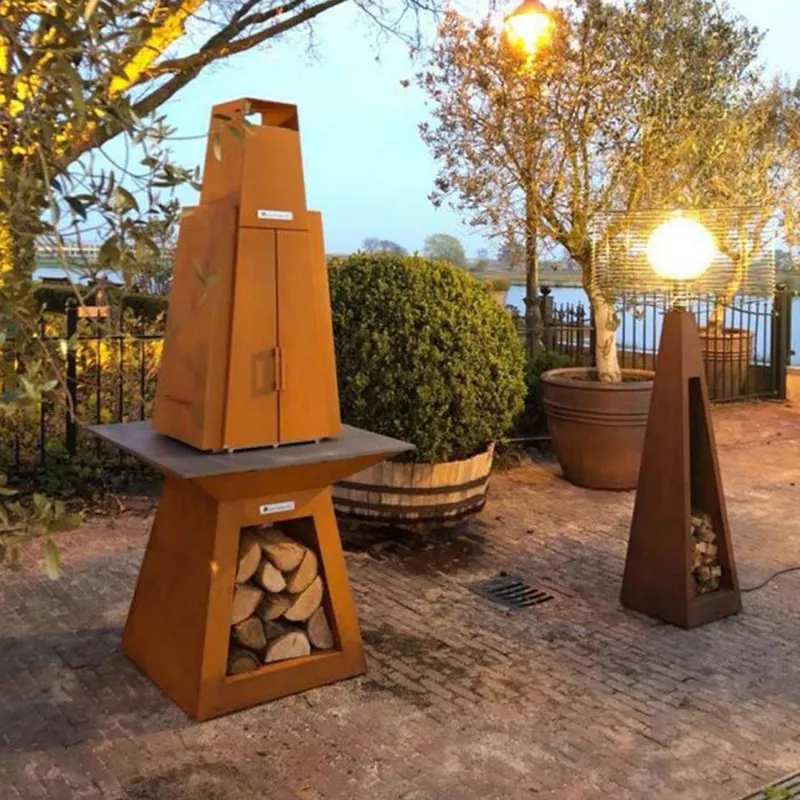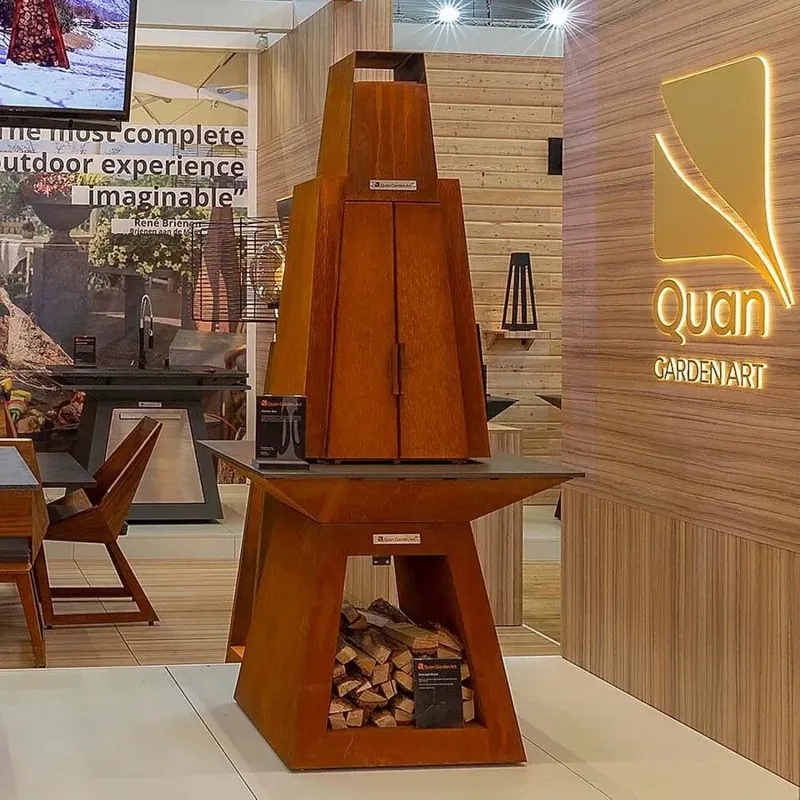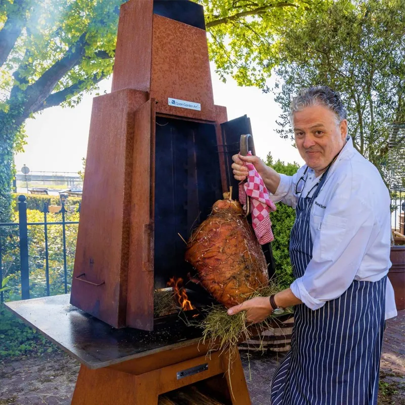 Коптильня Quan Smoke Box з кортену від Quan Garden Art - чудовий аксесуар, спеціально розроблений для використання з грилями-вогнищами Quan. Коптильню можна встановити на верхню плиту грилів Premium Large і Rolling Kitchen (з планчою розміром 100 х 100 см). Коптильню можна швидко і легко встановити або зняти, коли це необхідно, без будь-яких інструментів. Ця коптильня не тільки дозволяє ефективно коптити улюблені страви, а й зберігає додатковий простір для приготування на самій планчі для гриля. Це дозволяє коптити м'ясо і рибу без шкоди для поверхні верхньої планча. Це означає, що Ви все ще можете готувати на своїй планчі під час копчення. Подовжений димохід гарантує, що будь-які пари виходять на високому рівні, запобігаючи потрапляння шкідливих газів на всіх оточуючих.