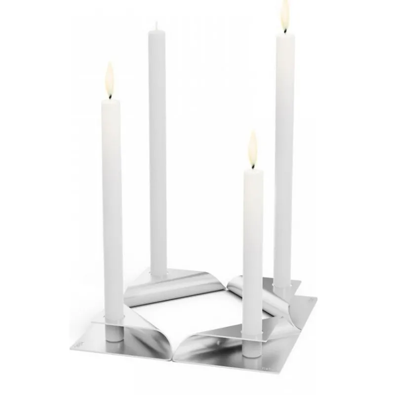 Набір Hoefats Square Candle Silver -ідеально підходить практично для будь-якої свічки (Ø 20-24 мм)*. Стійка підставка та легке очищення, гнучко адаптується до індивідуальних потреб та випадків. Все починається з квадрата, який плавним рухом виходить із плоскої поверхні, перетворюючись на разюче простий свічник.