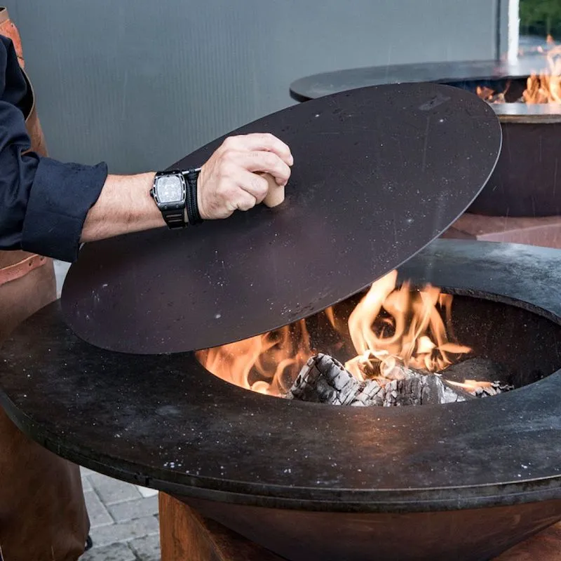 Дотримання безпеки. Важливо відзначити, що кришка пламегасник є важливим елементом у грилі. Вона має точно відповідати діаметру вогнища. Кришка призначена для швидкого гасіння полум'я. Вона зроблена з міцної сталі та оснащена зручною ручкою з червоного дерева.