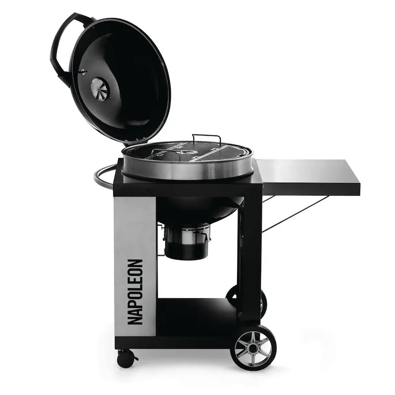 Гриль на подарунок Napoleon PRO Cart 57 см відрізняється досить великою робочою поверхнею діаметром 22,5 дюйма, на якій можна готувати одночасно пару десятків гамбургерів!