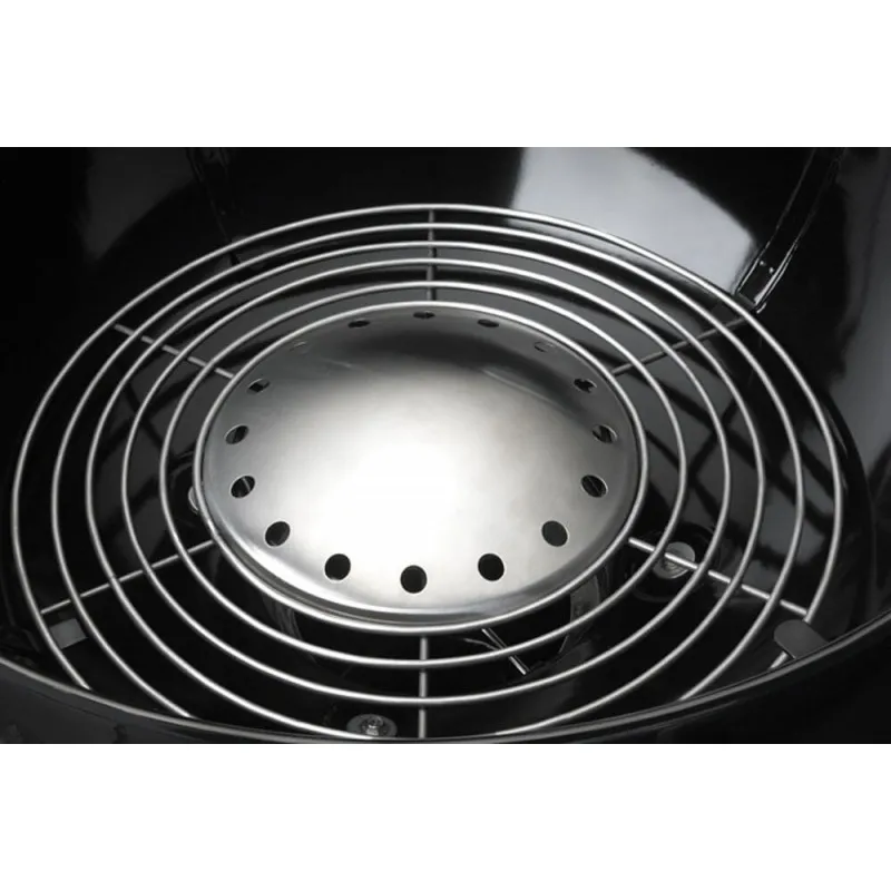 Вбудований термометр ACCU-PROBE допомагає контролювати температуру, а вентиляційний отвір забезпечує додатковий контроль. Тяжкі сталеві грати для вугілля утримують деревне вугілля від відстані від дна чаші, створюючи ідеальний повітряний потік і дозволяючи золі падати на дно, прямо у великий золоуловлювач.