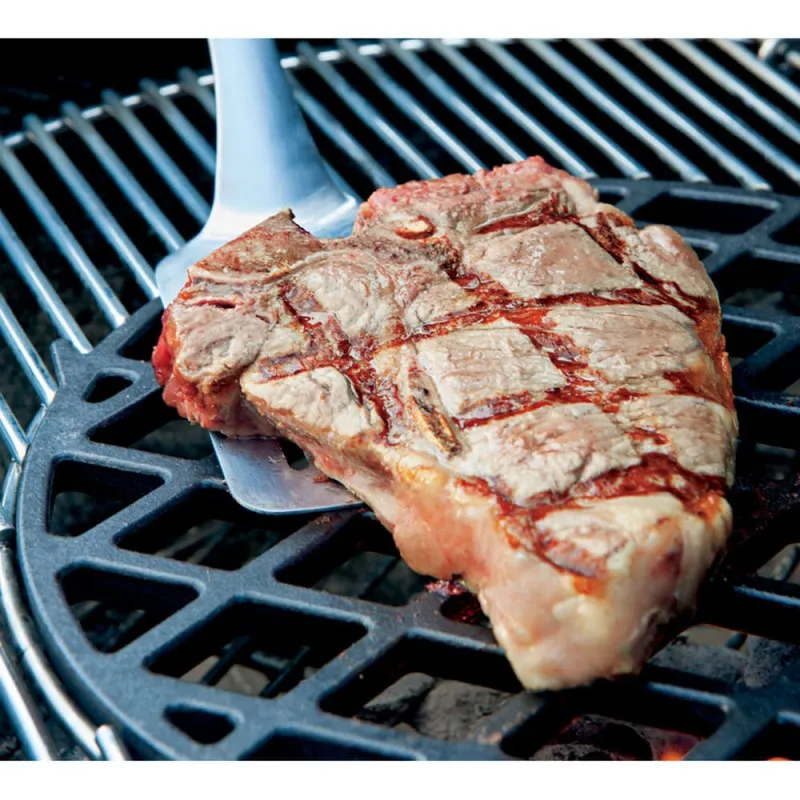 Мрієте зробити справжній стейк з «фірмовими» просмаженими смугами? Або шукаєте, на що можна покласти гриби і овочі, щоб вони не падали на гаряче вугілля? Наш інтернет-магазин рекомендує купити чавунну решітку для гриля. Модель GBS від німецького бренду Вебер ідеально підходить газових і вугільних грилів, мають однойменний модуль.