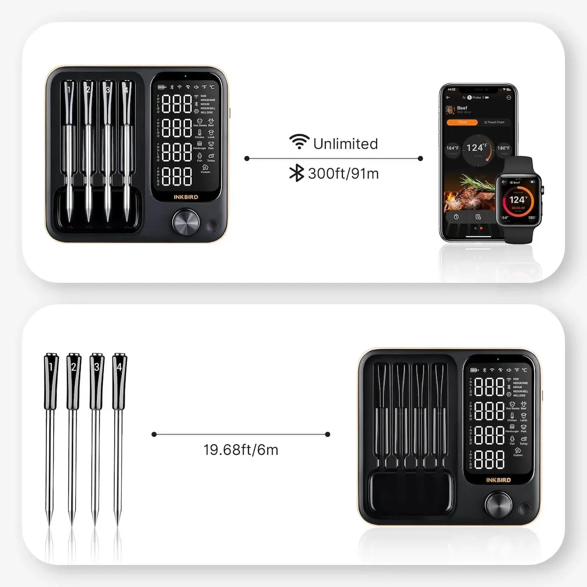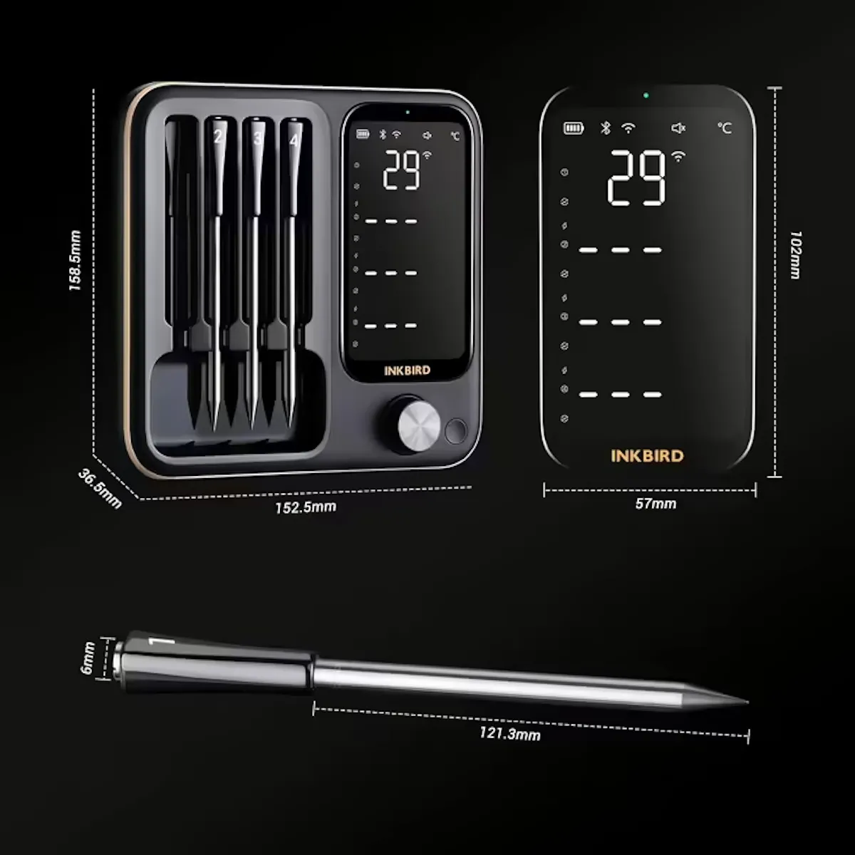 INKBIRD INT-14-BW – це ваш незамінний помічник у приготуванні смачних страв на грилі, духовці, мангалі чи фритюрниці. Цей бездротовий термометр поєднує в собі зручність, точність та інтелектуальні функції, щоб зробити процес приготування їжі максимально простим та ефективним.