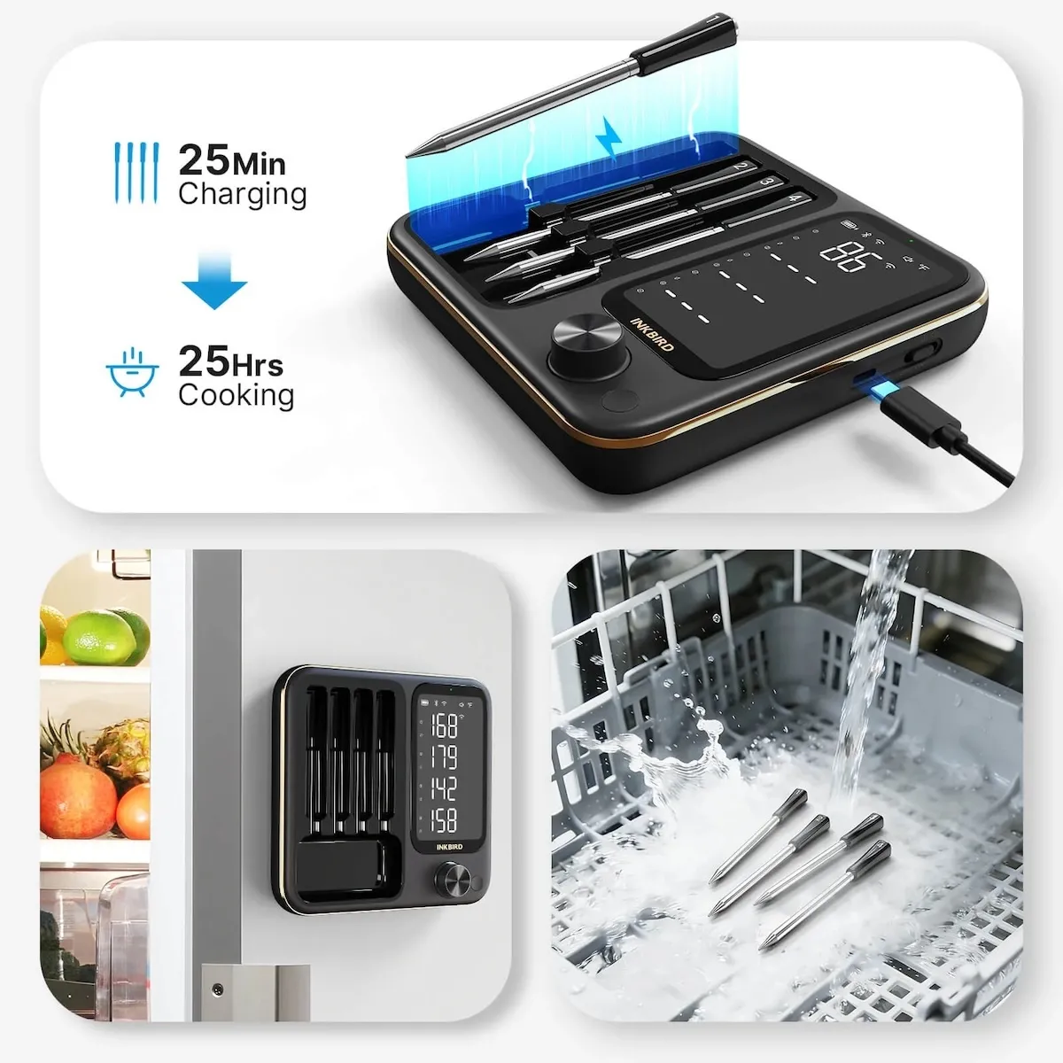 - 4 бездротових щупи для одночасного контролю декількох продуктів.